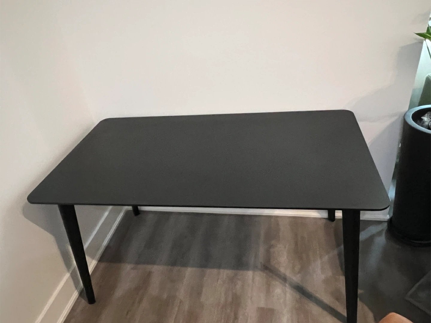 Selling an IKEA Lisabo table in black/ash veneer! It's in great shape and ready for a new home. The dimensions are 140 cm x 78 cm (55 1/4" x 30 3/4"). This table is super easy to assemble and perfect for a dining area or workspace