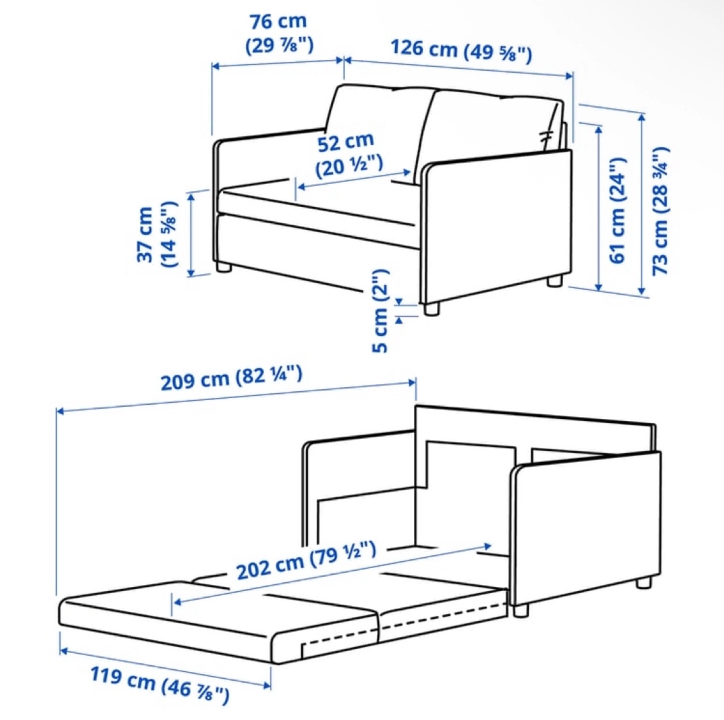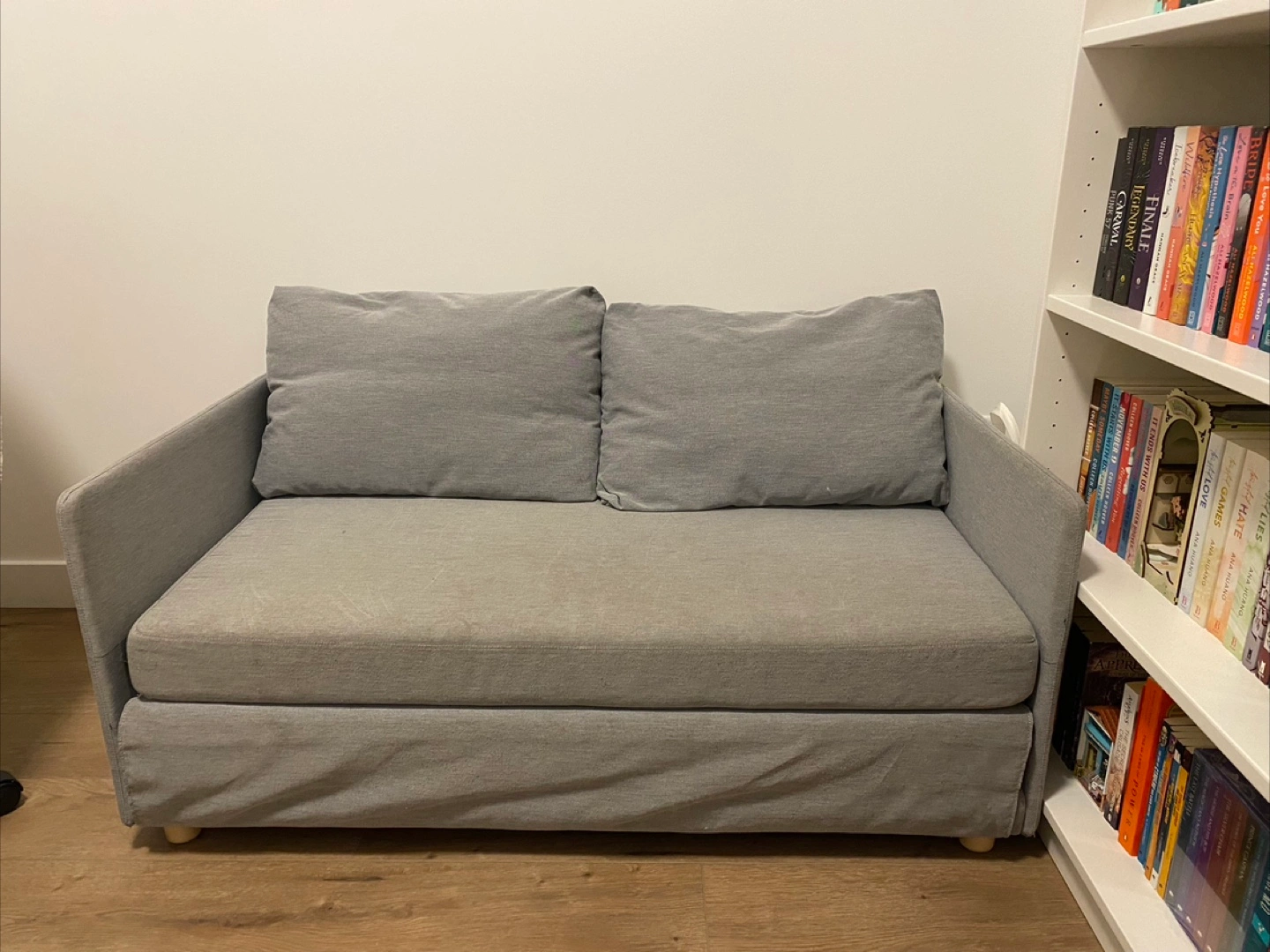 Selling a comfy IKEA loveseat sofa bed in grey! It's in great shape and perfect for small spaces or a guest room. Approximate Dimensions: - Width: 126 cm (49 5/8") - Depth: 76 cm (29 7/8") - Height: 61 cm (24") - Bed width: 119 cm (46 7/8") - Bed length: 202 cm (79 1/2") DM for more pictures! Price Negotiable Pick-up only E-transfers only!