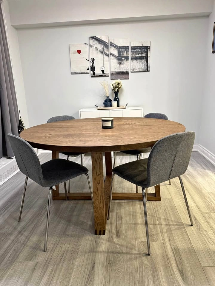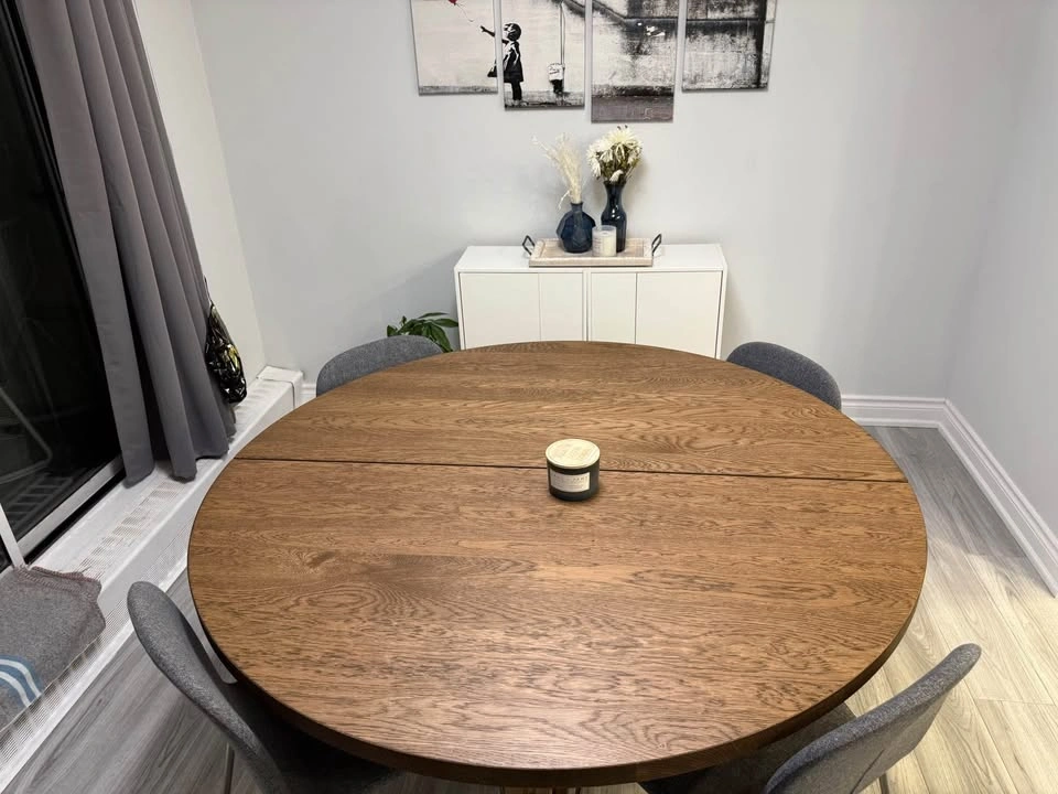 Selling the IKEA MÖRBYLÅNGA solid oak dining table in excellent condition. Purchased last year, but it’s too large for my current space. •Solid oak veneer top with natural wood grain •Sturdy trestle-style base •Seats 4–6 people comfortably •Very well maintained, minimal signs of use Price: $750 or best offer Chairs not included Pickup only Feel free to message for more details or additional photos.