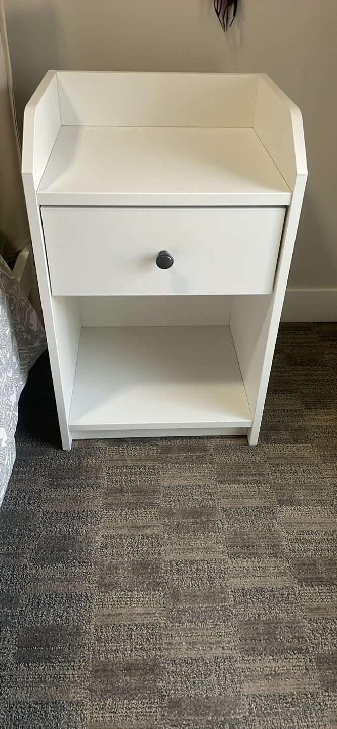 Selling an IKEA MALM bed frame and a matching nightstand. The bed frame is a queen size and is in great condition. The nightstand is also in excellent shape and provides handy storage. Both items are white and will complement any bedroom decor. This includes the mattress as well.