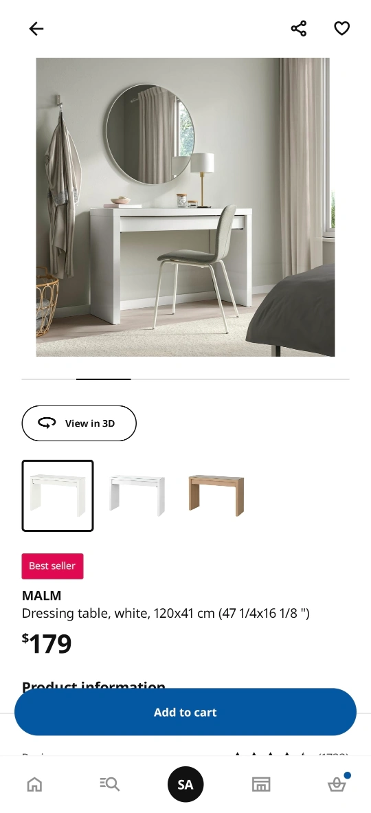 Selling a white IKEA MALM dressing table in great condition! It's perfect for a bedroom or dressing area. The dimensions are 120x41 cm (47 1/4x16 1/8 "). This stylish table originally retailed for $179