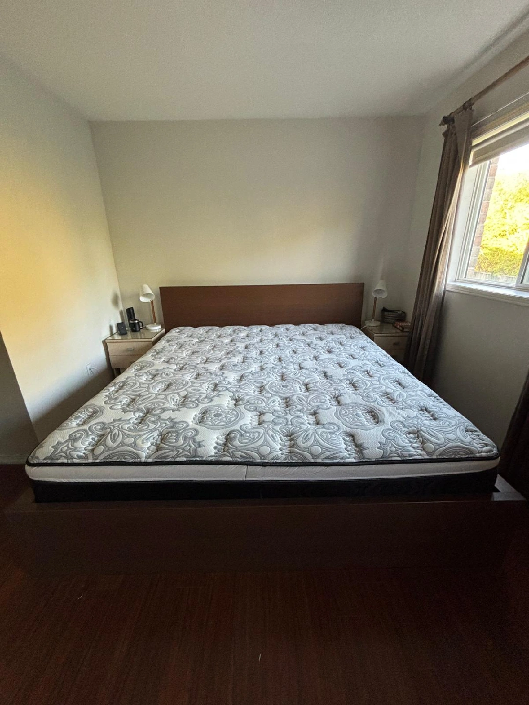 IKEA MALM KING BED WITH STORAGE High bed frame / 4 storage drawers Colour: Brown Measurements: In the picture Price: $310(without Mattress) Mattress used with cover - in very good condition(Price for the mattress negotiable) For more details visit IKEA website (2 pictures from IKEA web)