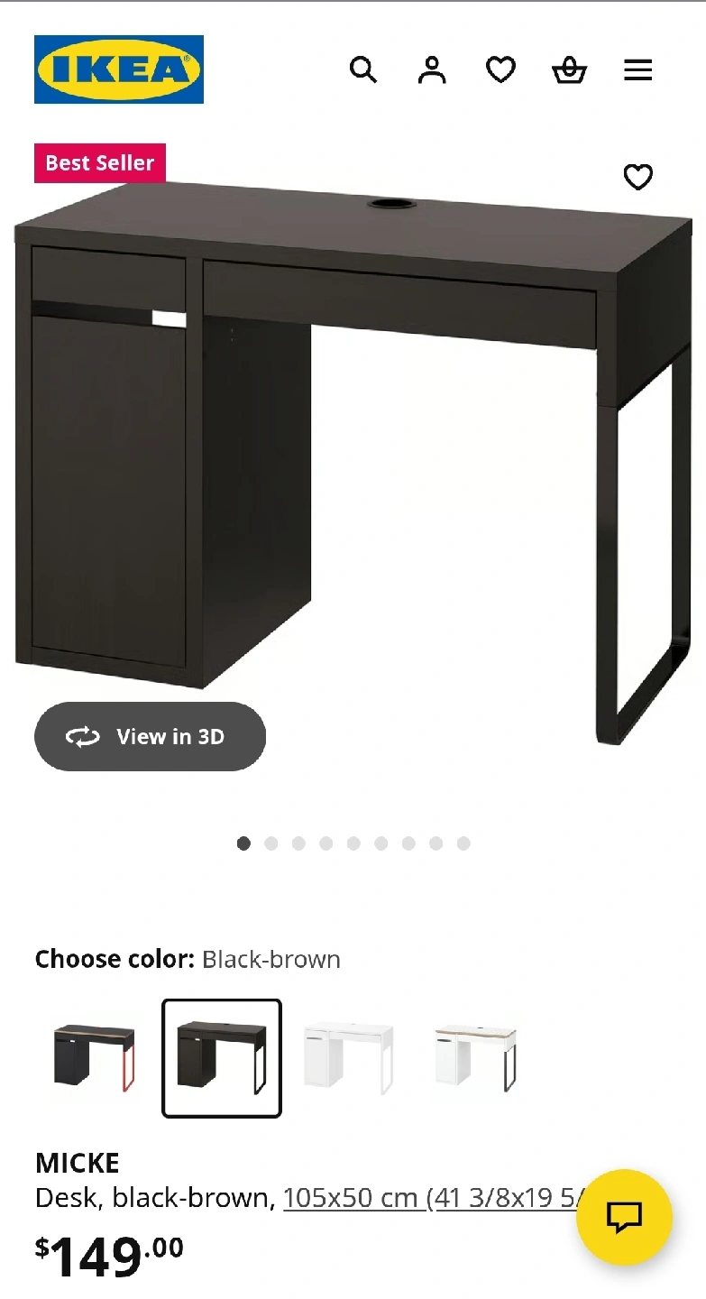 Selling an IKEA Micke desk in black-brown colour. It's in great shape and ready for a new home! The desk measures 105 cm (41 3/8") wide, 50 cm (19 5/8") deep, and 75 cm (29 1/2") high. Perfect for a home office or study space