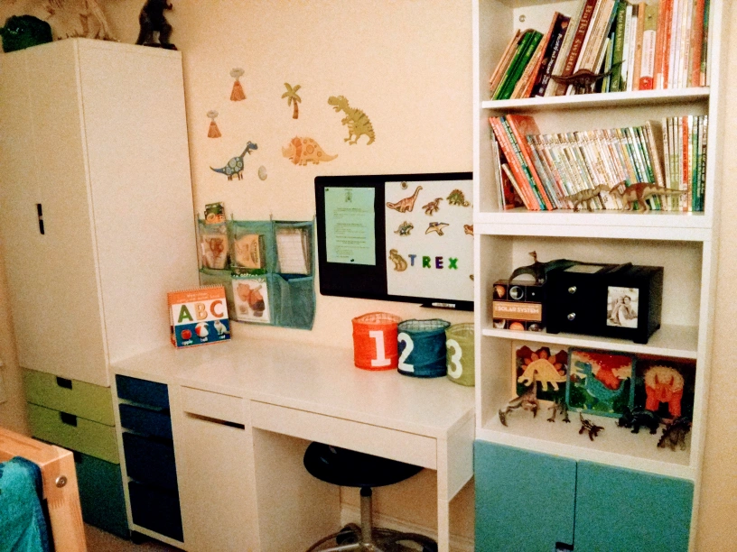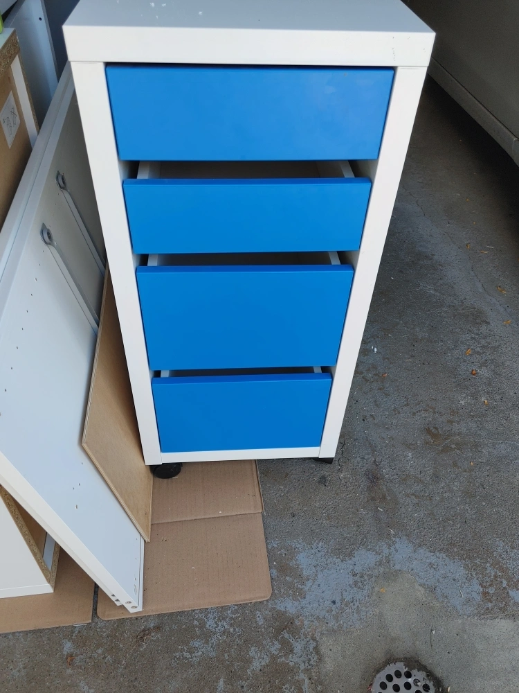 Selling an IKEA MICKE desk and storage combination. It's in great shape and perfect for a kid's room or home office. Includes a desk, drawers, and a bookshelf for plenty of storage. 4 pc: wardrobe, desk, side drawer and bookshelf.