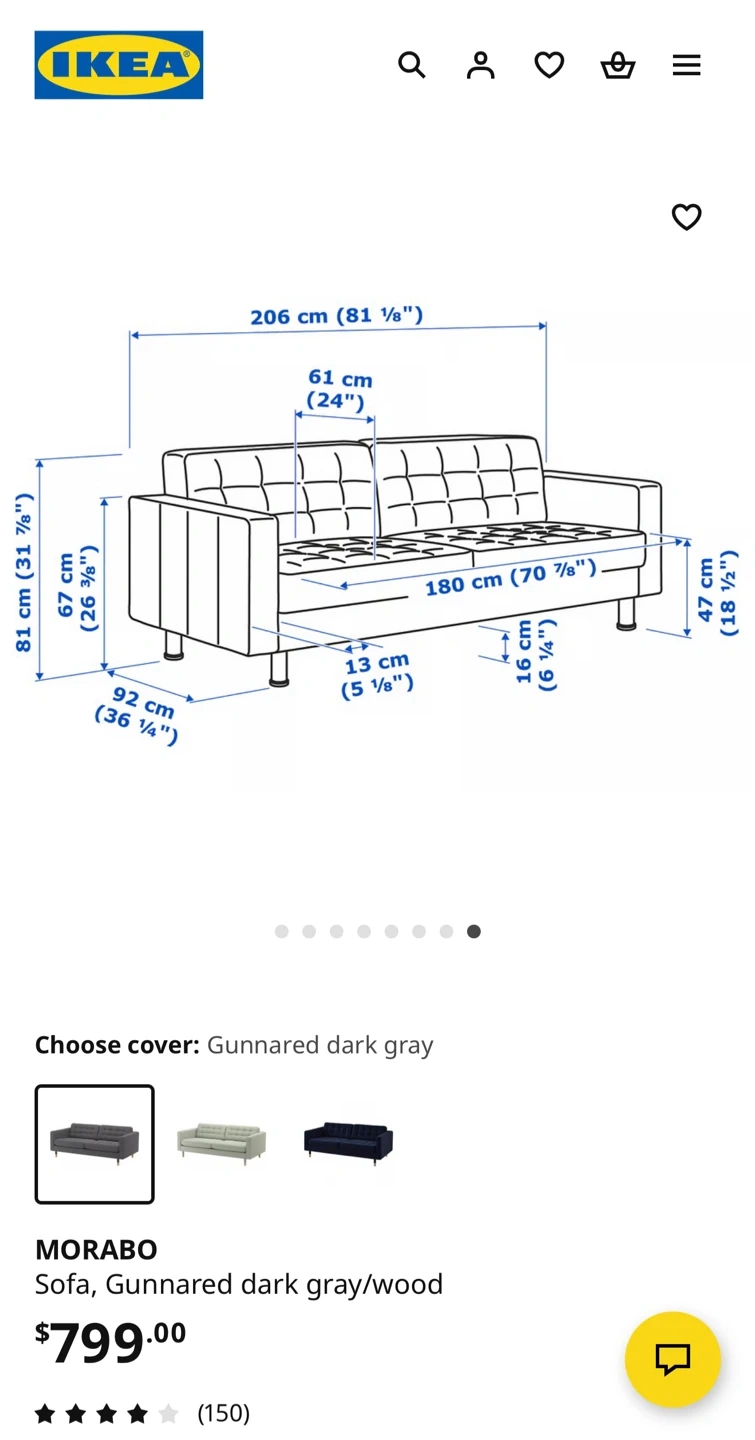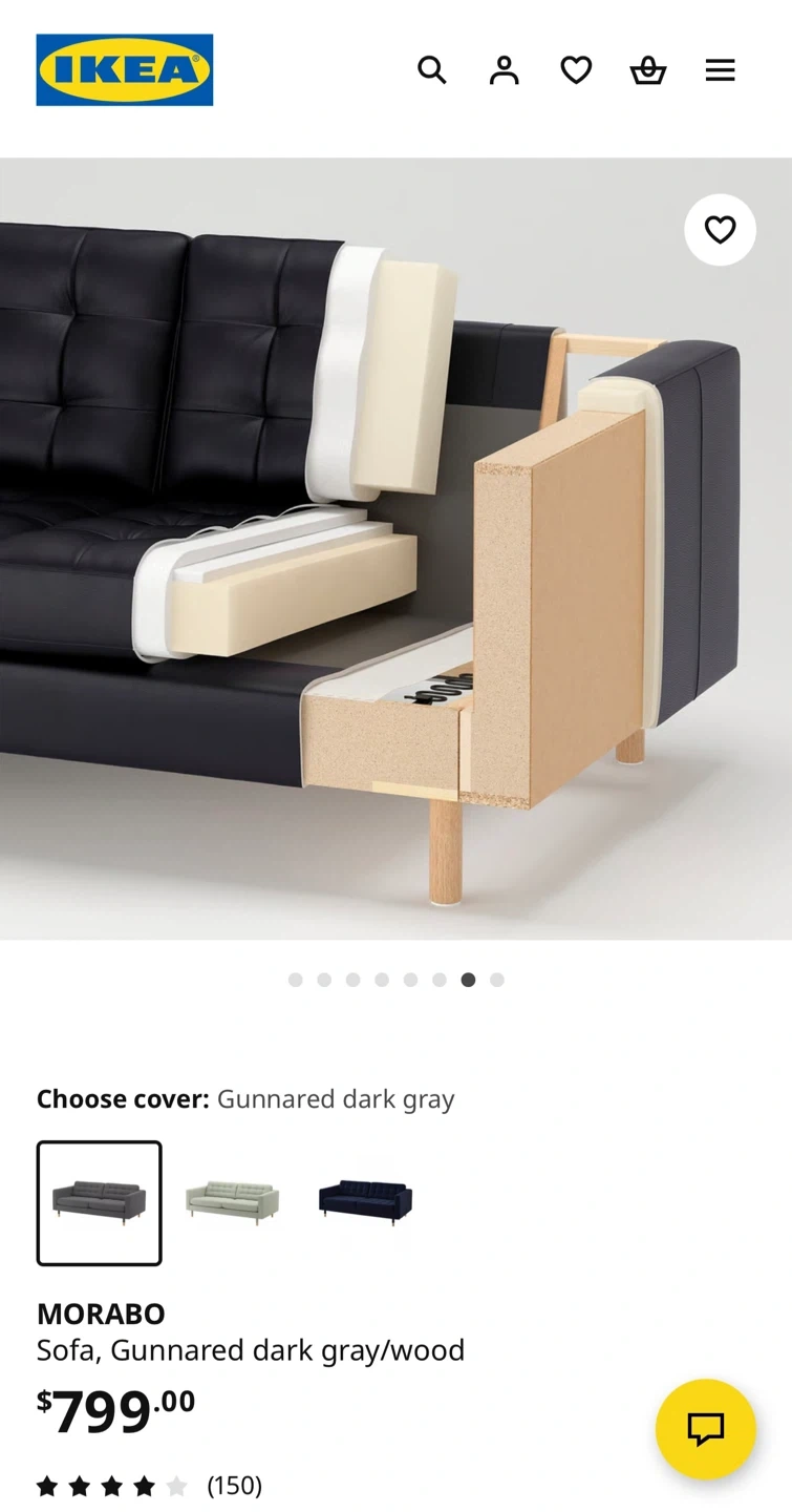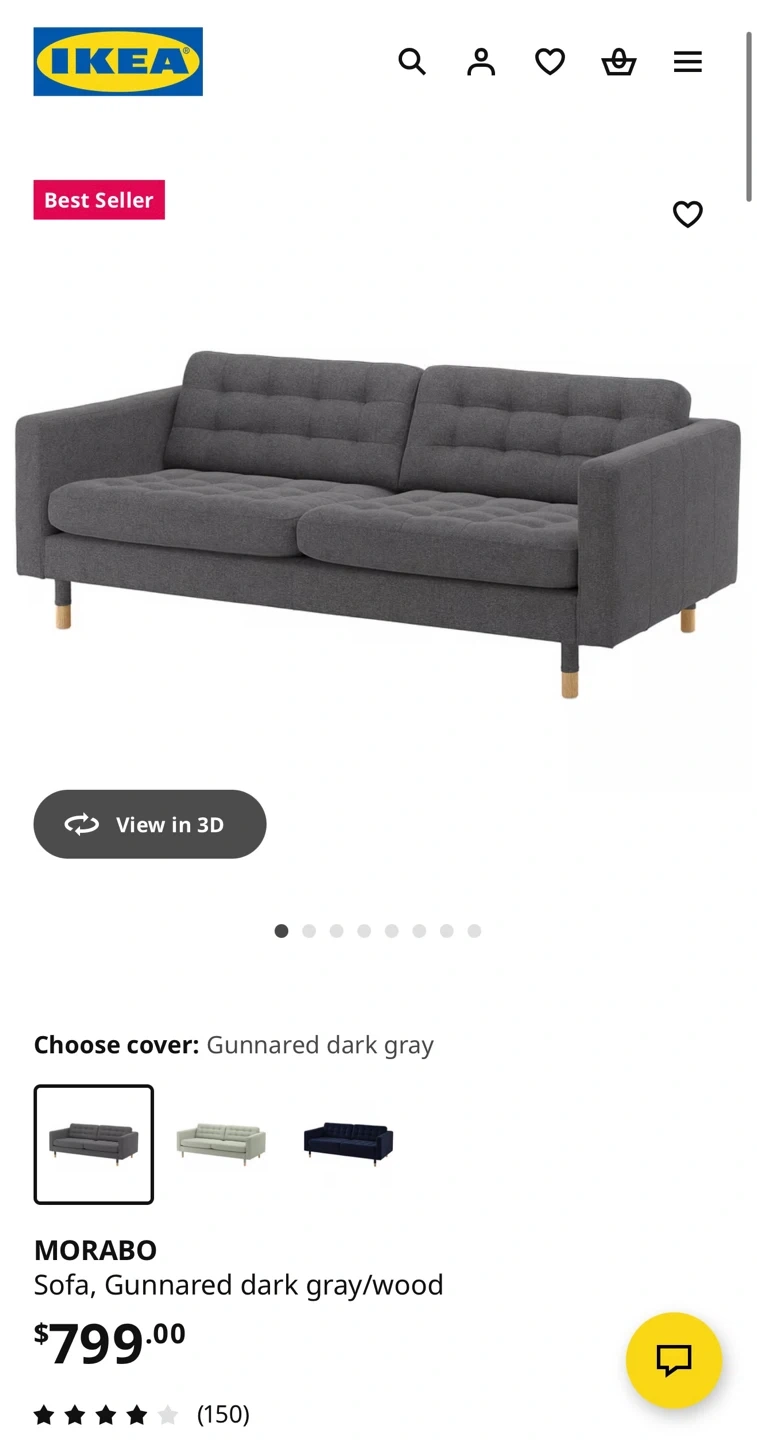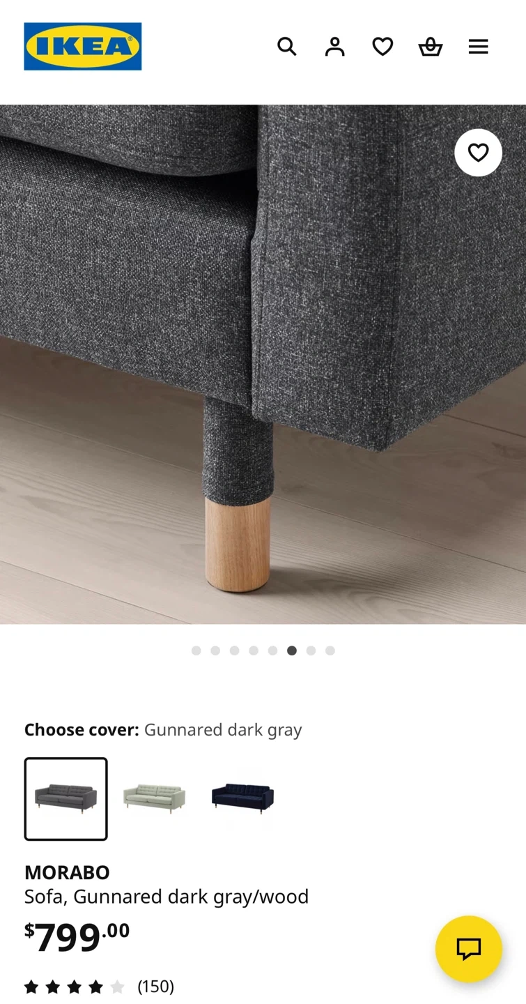 Selling an IKEA MORABO sofa with Gunnared dark gray cover and wood legs. It's in great shape and ready for a new home! Quality : 9/10 893.183.21 | MORABO sofa GUNNARED dark gray/wood NA Good quality/ no daamge. From : IKEA Richmond, CANADA. Have receipt if needed. 📍Pick up : Richmond BC. Message for current condition photos if interested ! ‼️📌 Kindly note that buyers are required to bring their own tools if disassembly of the sofa is needed during pickup. We do not provide tools on-site. Thanks for ur understanding!