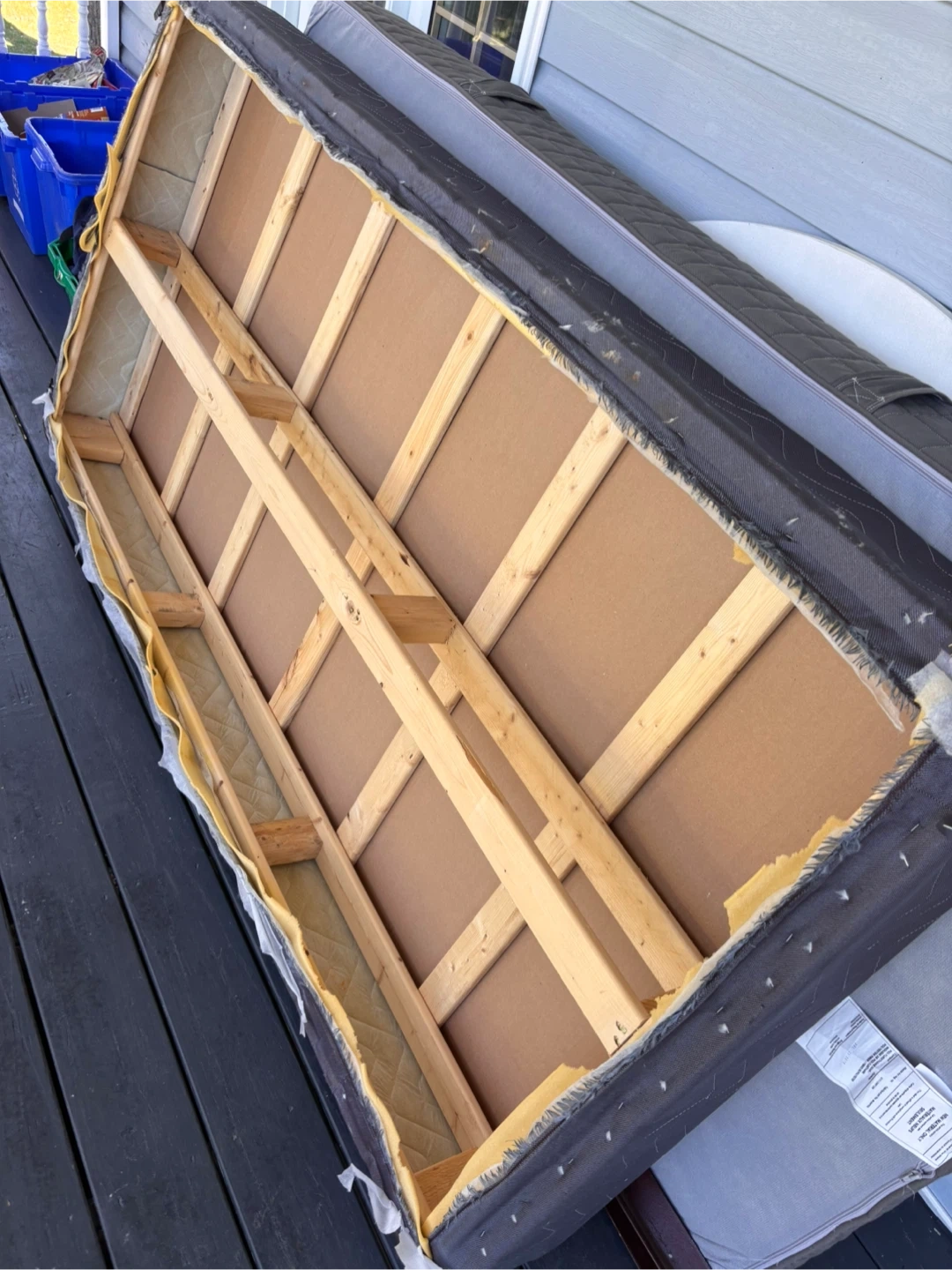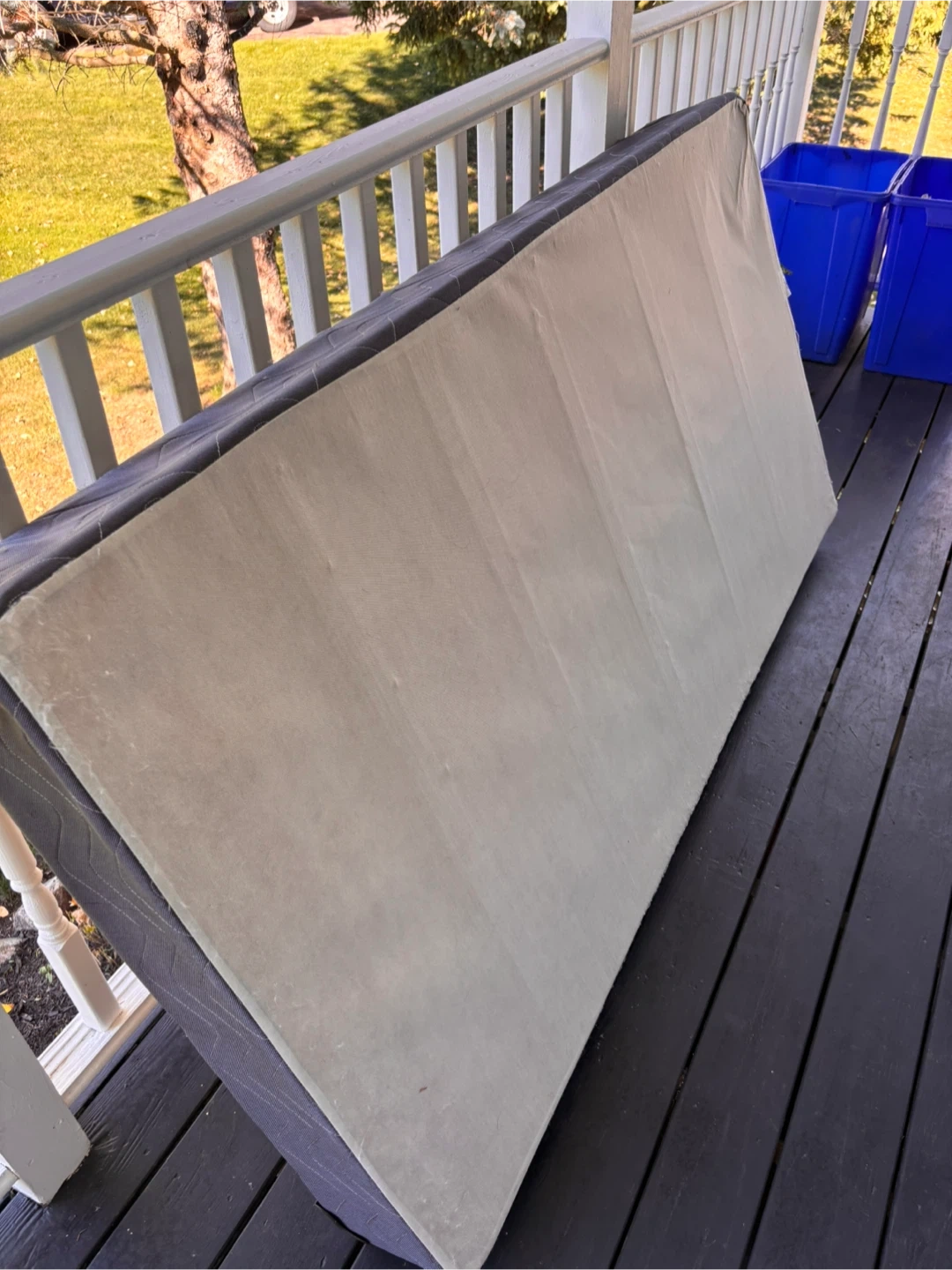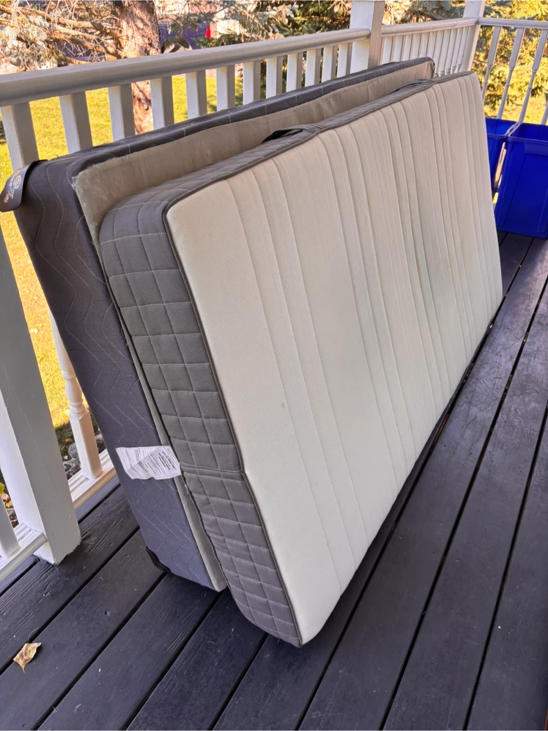 Selling an IKEA Morgedal mattress along with a white bed frame! The mattress is in good condition, the boxspring is missing the material as our kitten got trapped in there...am including mattress cover, white bed skirt and 2 inch memory foam topper. Was used for one year by an International student.. Might even have some sheets to thrown in!๐๐