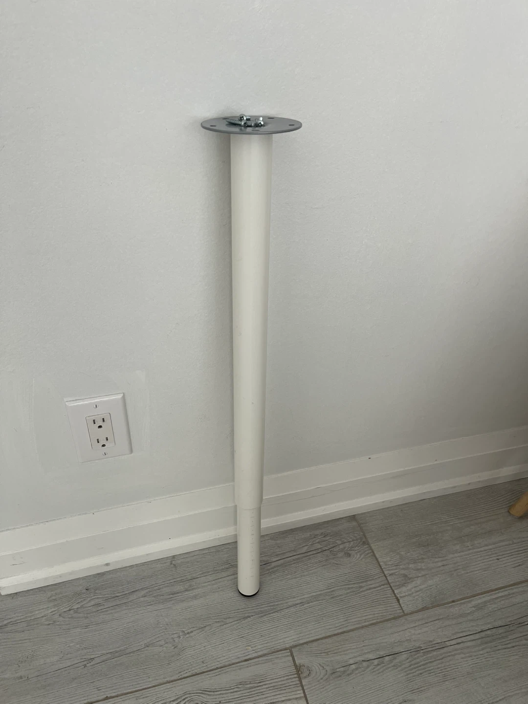 Selling a white IKEA OLOV adjustable leg! It's in great shape and ready to support your desk or table. The height is adjustable from 60-90 cm (23 5/8 - 35 3/8 "). The top plate is 11 cm (4 3/8") in diameter. Originally bought for $15