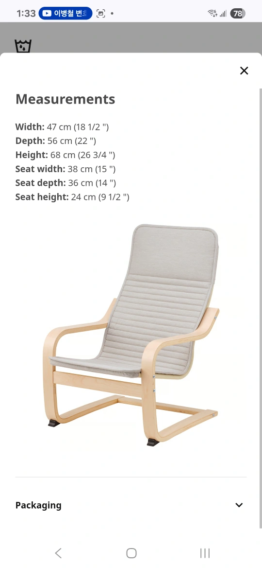 Selling an IKEA PÖANG kid's armchair in birch veneer with a Knisa light beige cushion! It's in great shape and super comfy for the little ones. Comes with 2 seat covers in the picture. Measurements: - Width: 47 cm (18 1/2 ") - Depth: 56 cm (22 ") - Height: 68 cm (26 3/4 ") - Seat width: 38 cm (15 ") - Seat depth: 36 cm (14 ") - Seat height: 24 cm (9 1/2 ") Price is firm and pickup is near Hwy7 and Bayview Ave in Richmond Hill.