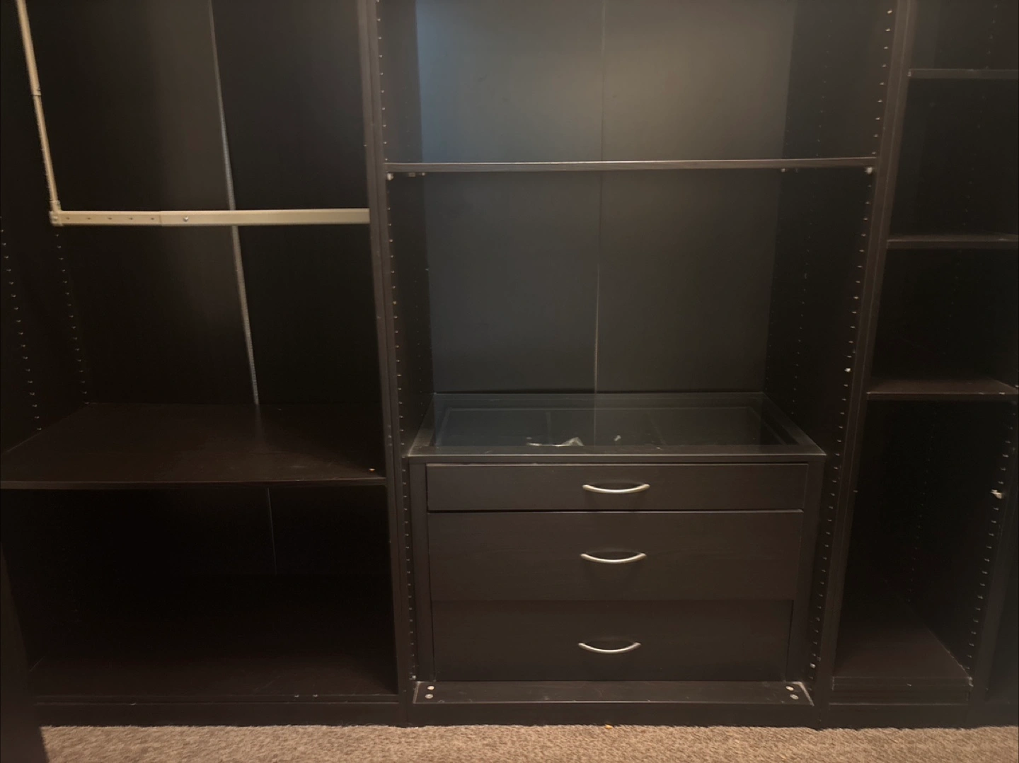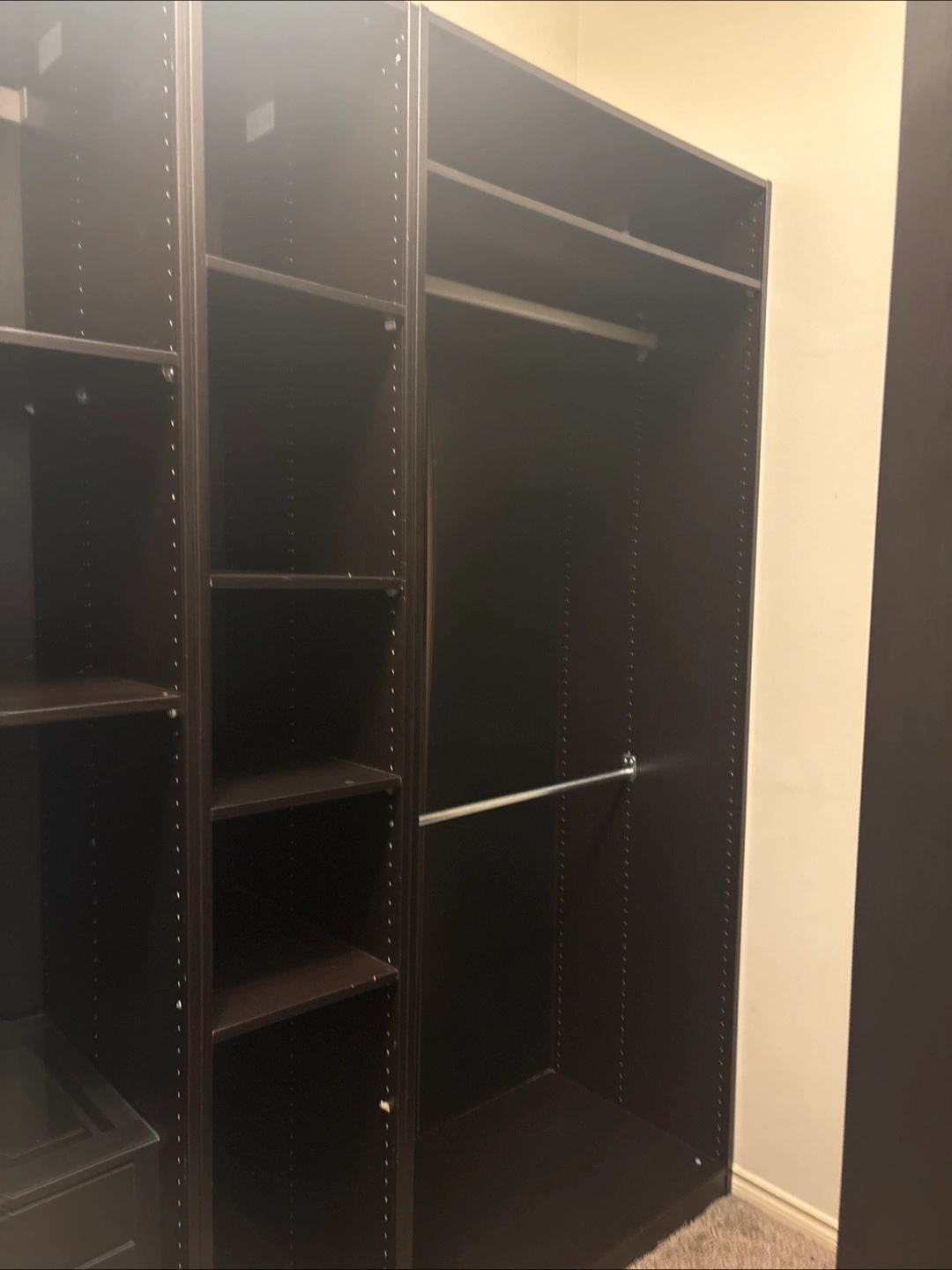 Selling a dark brown IKEA PAX wardrobe system. It's in great condition and ready to organize your space! Includes shelves, drawers, and hanging rods to customize the layout to your needs. Perfect for maximizing storage in any room Message me for video and dimensions. 780 906 9529