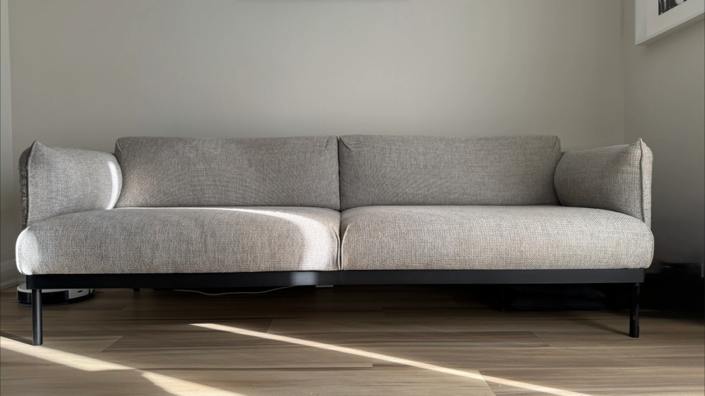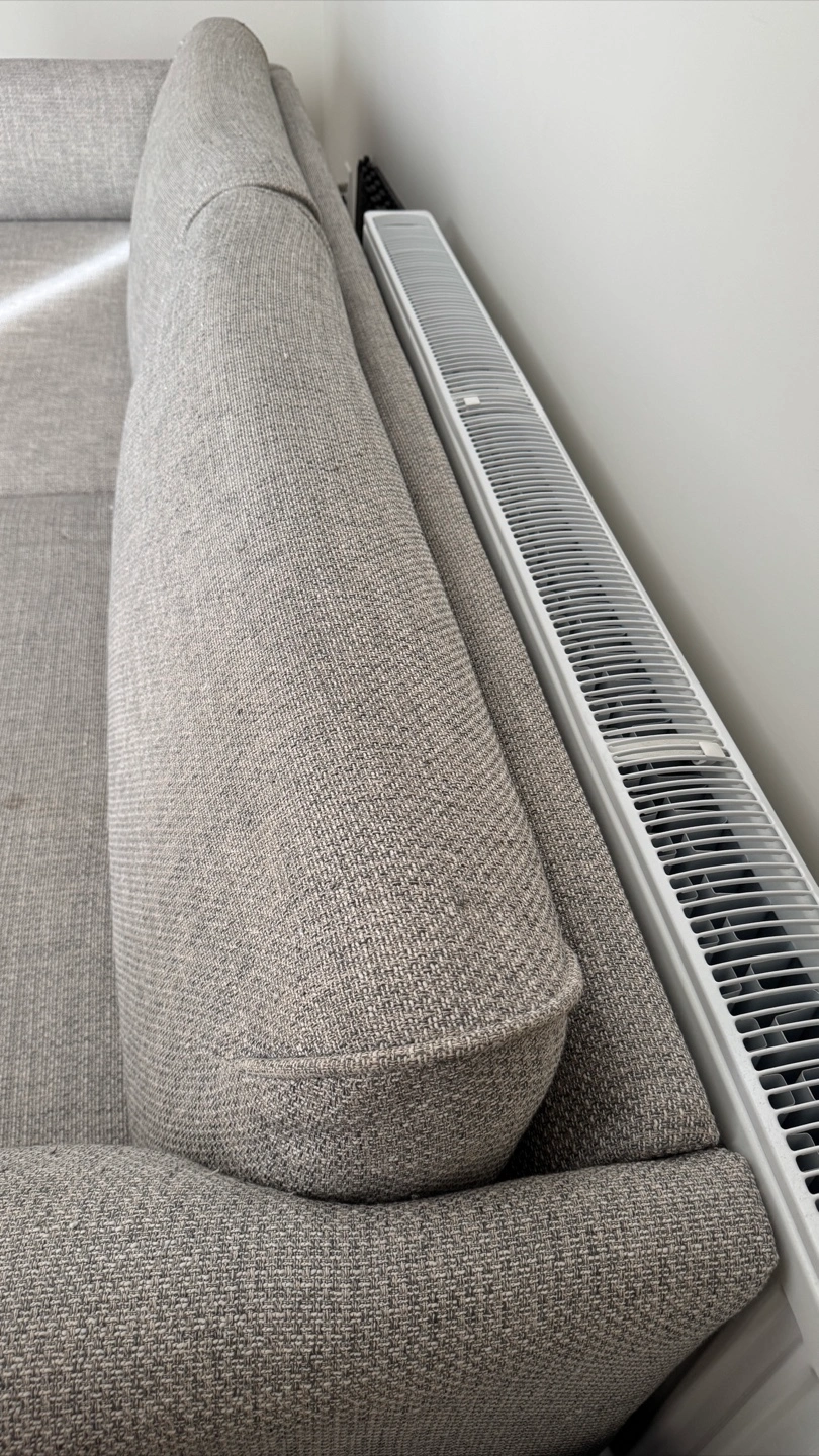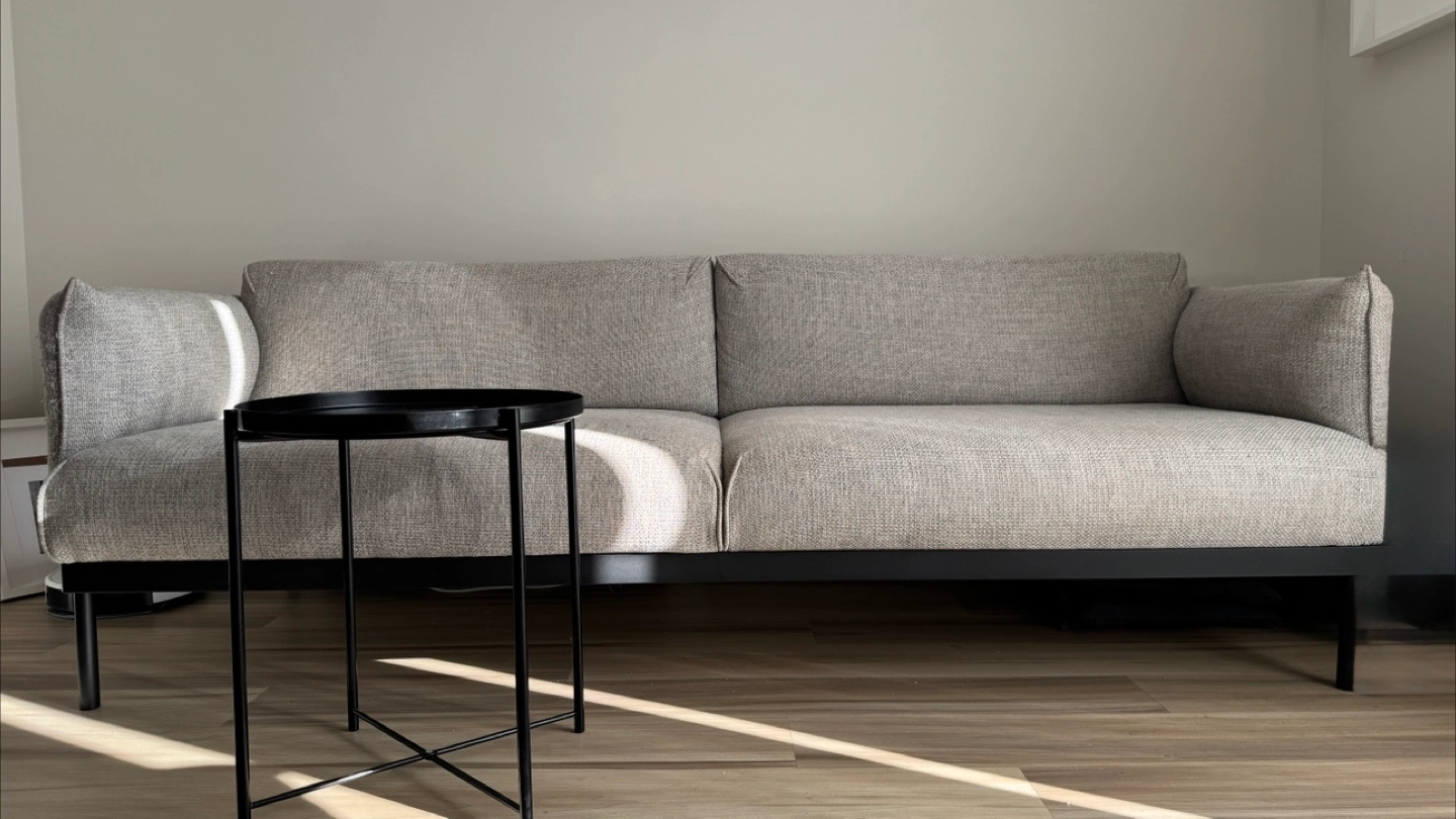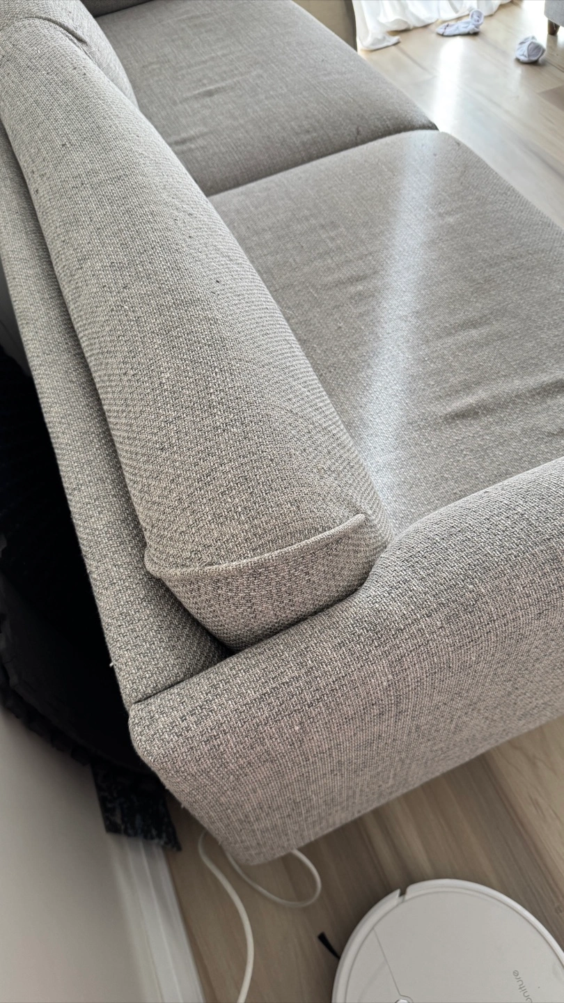 *No Delivery *Original Price: $1090 Selling a comfy grey sofa! It's in great condition and would look great in any living room. The fabric is a neutral grey colour, and the frame has a modern design with black legs. It's a stylish and comfortable piece of furniture! IKEA ÄPPLARYD Sofa, Lejde light gray W: 91” (231cm), D: 36” (93cm), H: 32” (82cm)