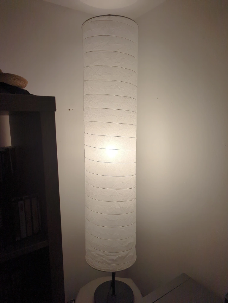 Selling a gently used IKEA REGOLIT floor lamp. It provides a soft, ambient light, perfect for creating a cozy atmosphere in any room. The lamp features a white shade and a sleek, minimalist design that fits well with various decor styles