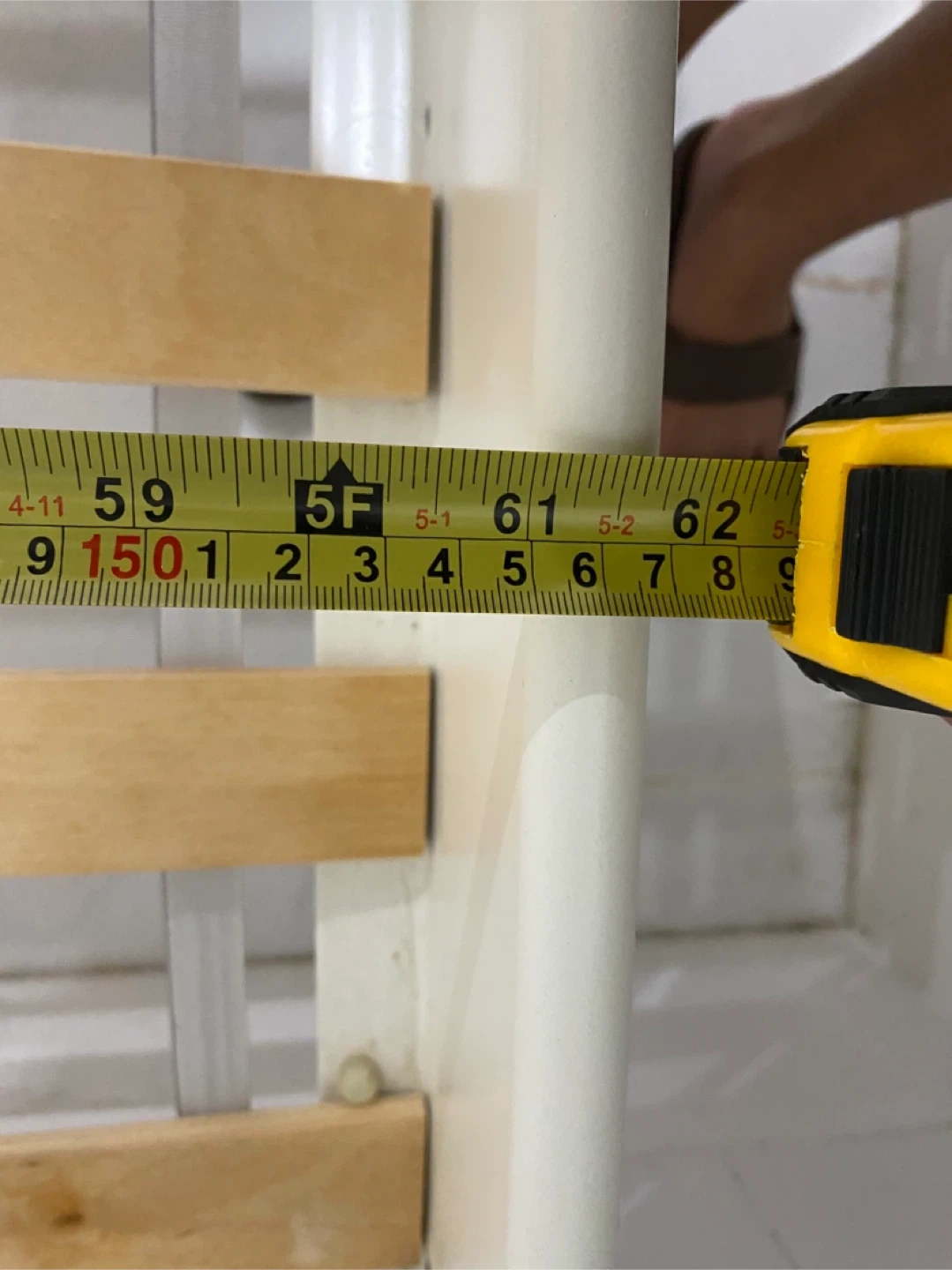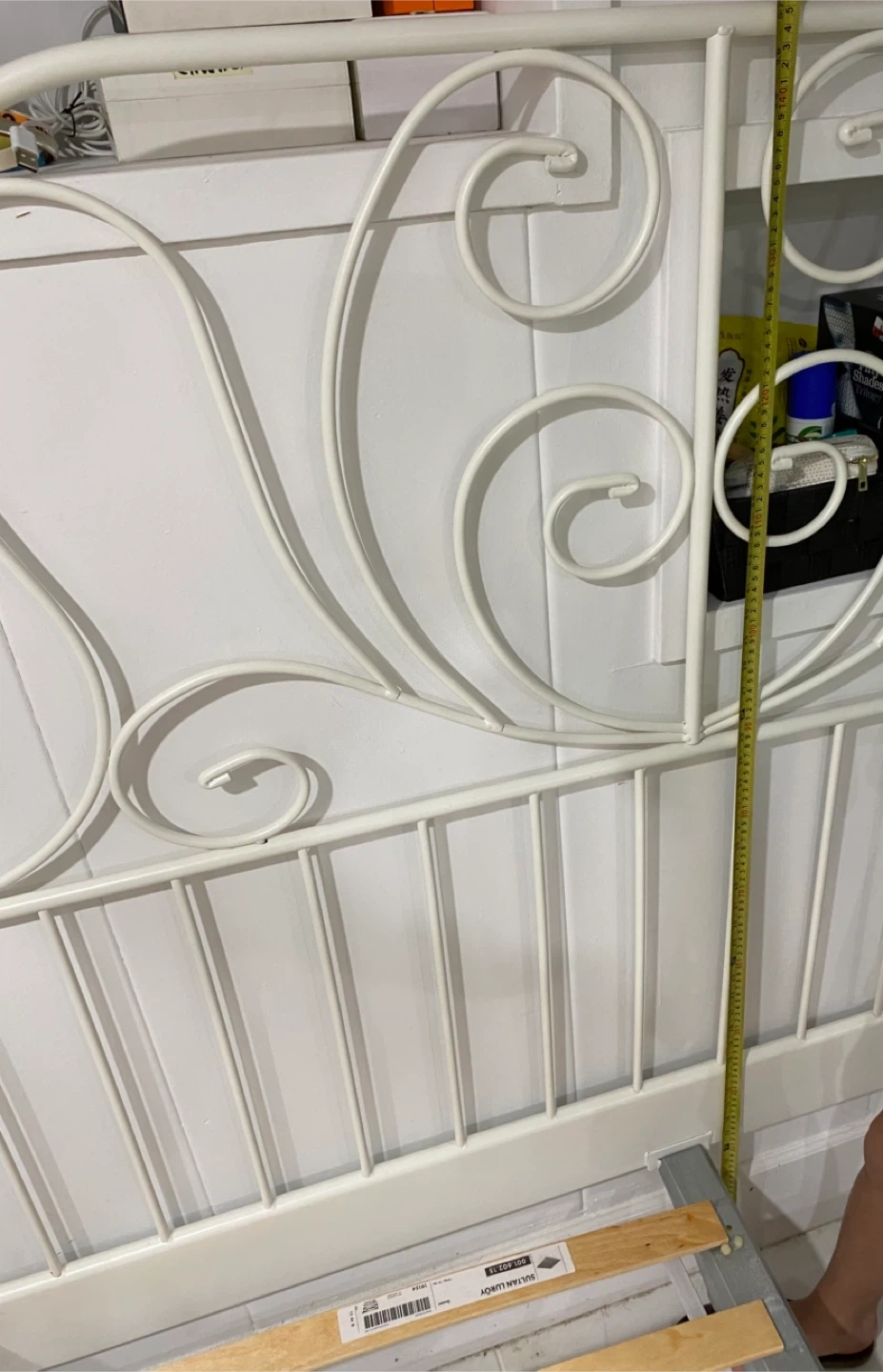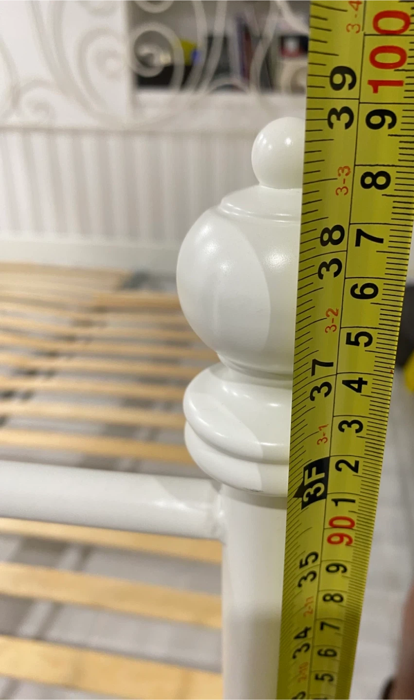 Selling a white IKEA bed frame. It's in good condition and has a lovely, classic design. The frame is sturdy and ready for a new home. The height is approximately 140cm and the width is about 150cm. Perfect for adding a touch of elegance to your bedroom! ** Pet Free and Smoke Free Home**