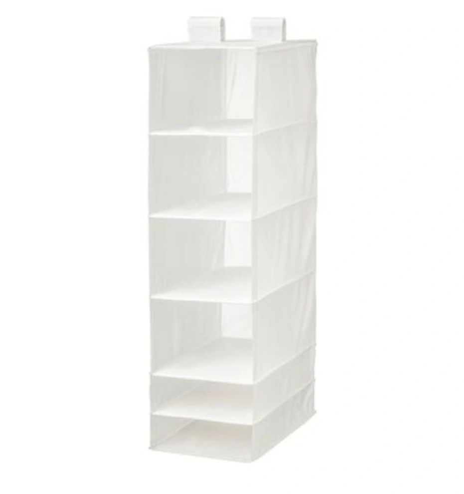 Declutter your closet with this handy IKEA SKUBB hanging storage! It features 6 compartments, perfect for keeping sweaters, accessories, or even baby clothes organized. The white colour blends seamlessly into any wardrobe. Great for maximizing vertical space!