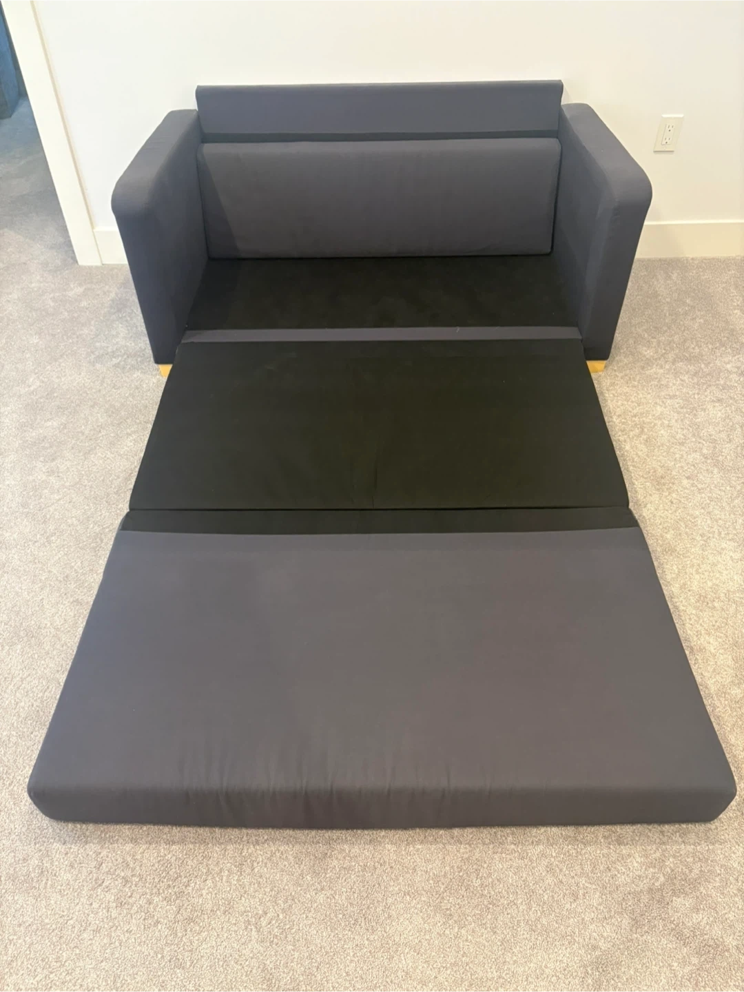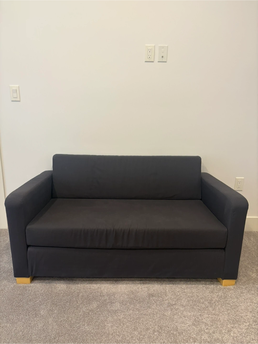 Selling a gently used IKEA sleeper sofa in black! It's in great condition and perfect for small spaces or guest rooms. This sofa easily converts into a bed, making it super practical for when you have visitors. It's a comfortable couch and a convenient sleeping solution all in one