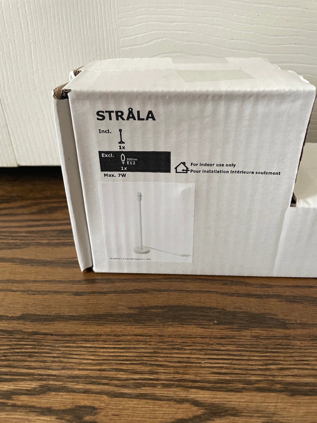 Selling a brand new IKEA STRÅLA table lamp, still in its original packaging! It's an indoor lamp that requires one E12 bulb (not included). It has a max wattage of 7W. Perfect for adding a cozy glow to any room!