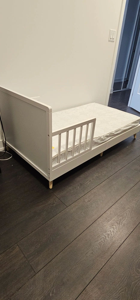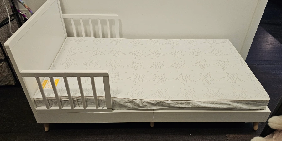 Selling a white IKEA Sundvik extendable bed frame. It's in great shape and ready for a new home! Perfect for a growing child, this bed can be adjusted to different lengths as needed. Mattress included.