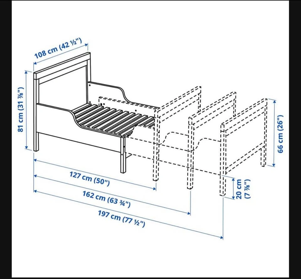 Full IKEA kids bed set in great condition! Includes: β’ Sundvik Extendable Bed Frame (white) β’ Innerlig Extendable Mattress β’ Luroy Slatted Bed Base The bed adjusts in length to grow with your child β solid, clean, and from a smoke-free, pet-free home. Everything is ready to use. π Pickup only: Kingsway & 16th Ave, Burnaby