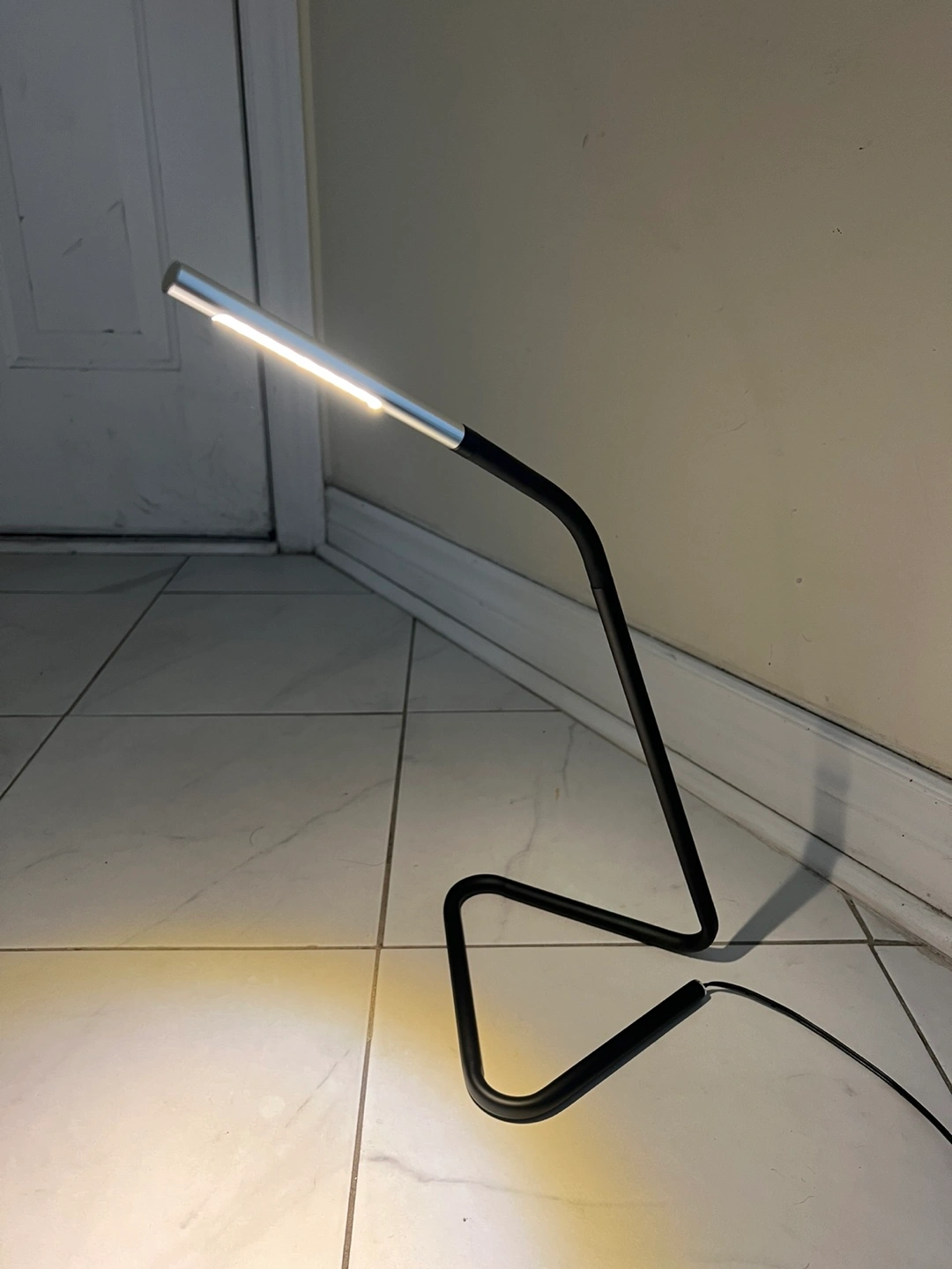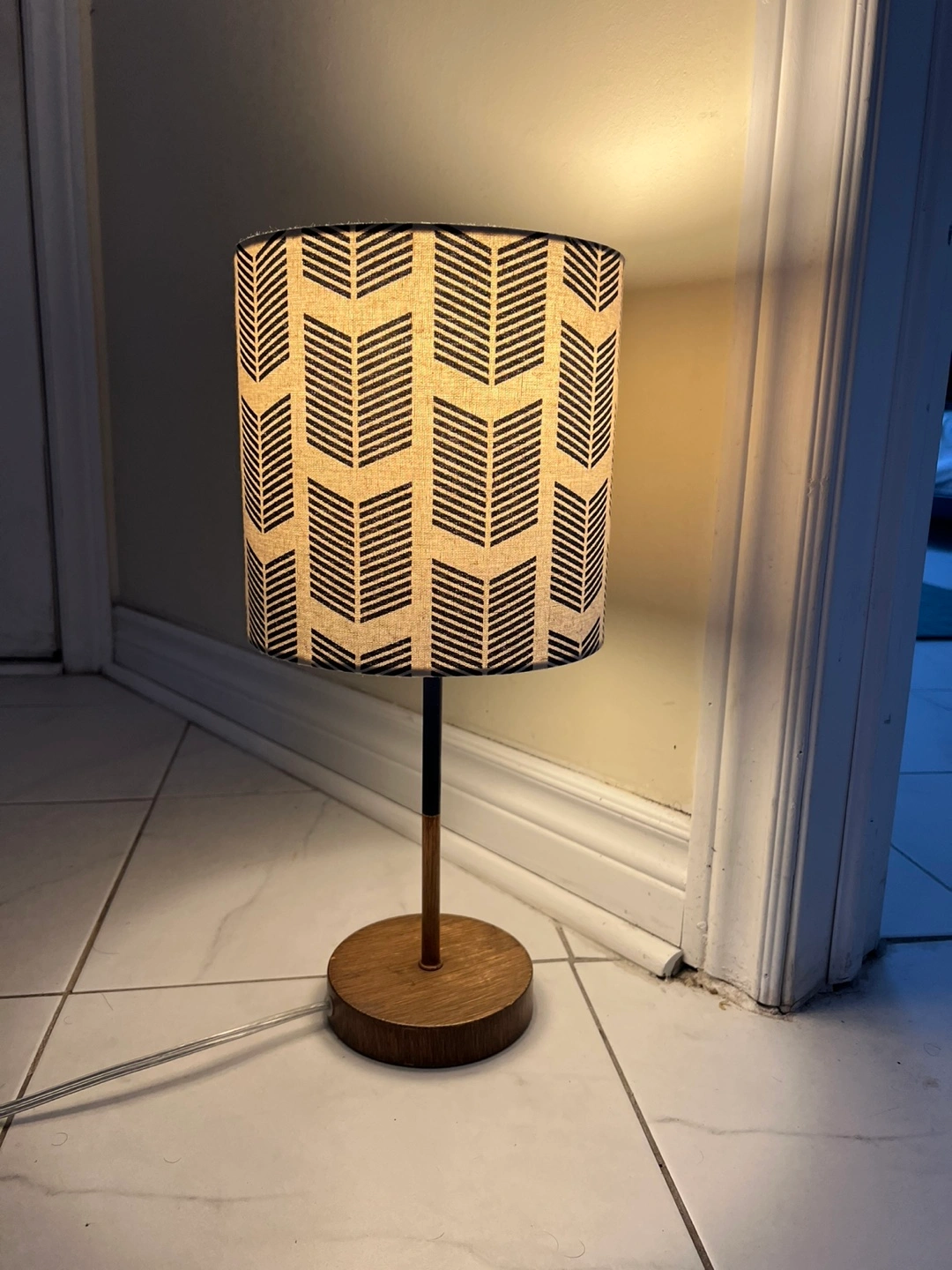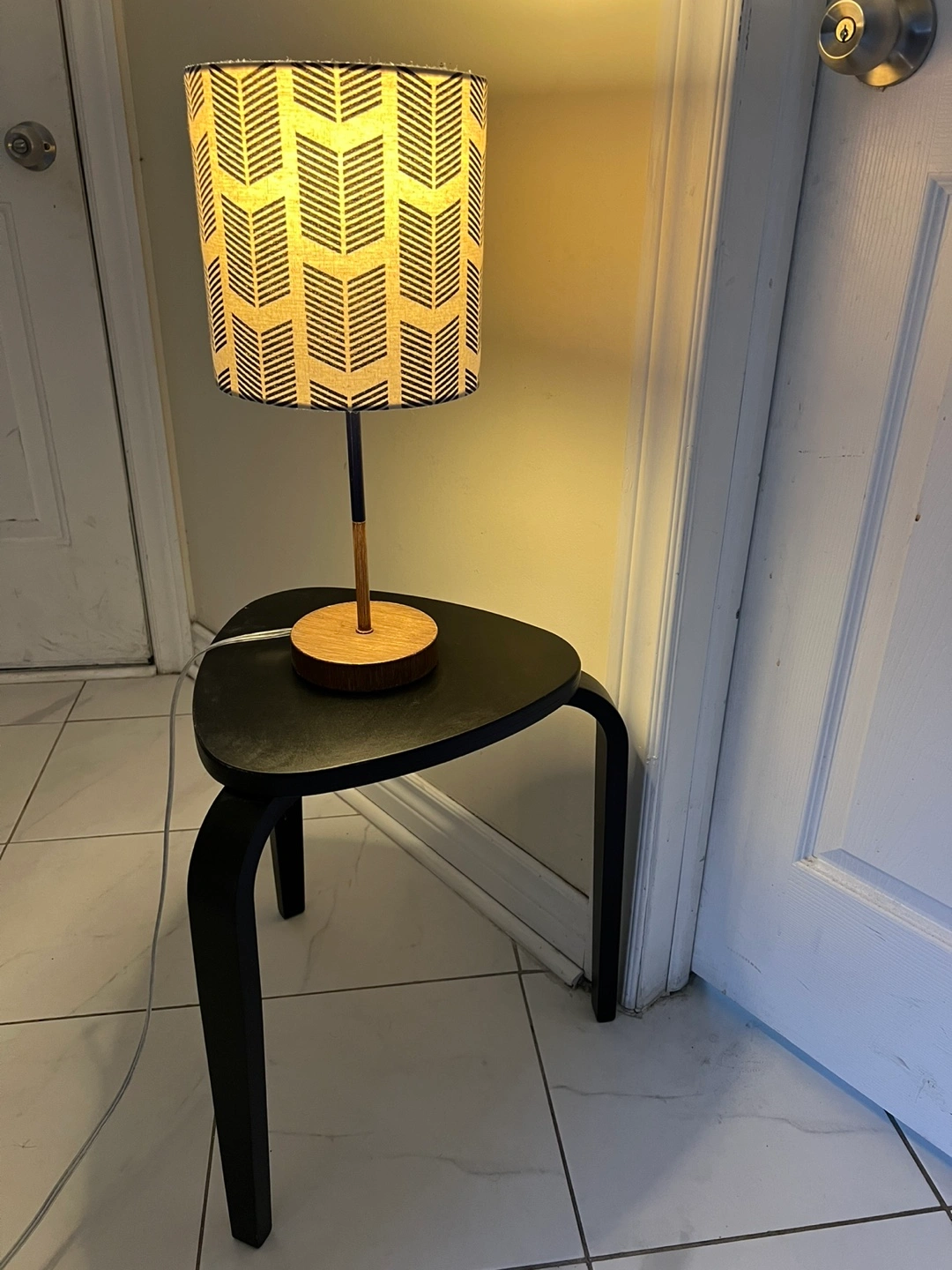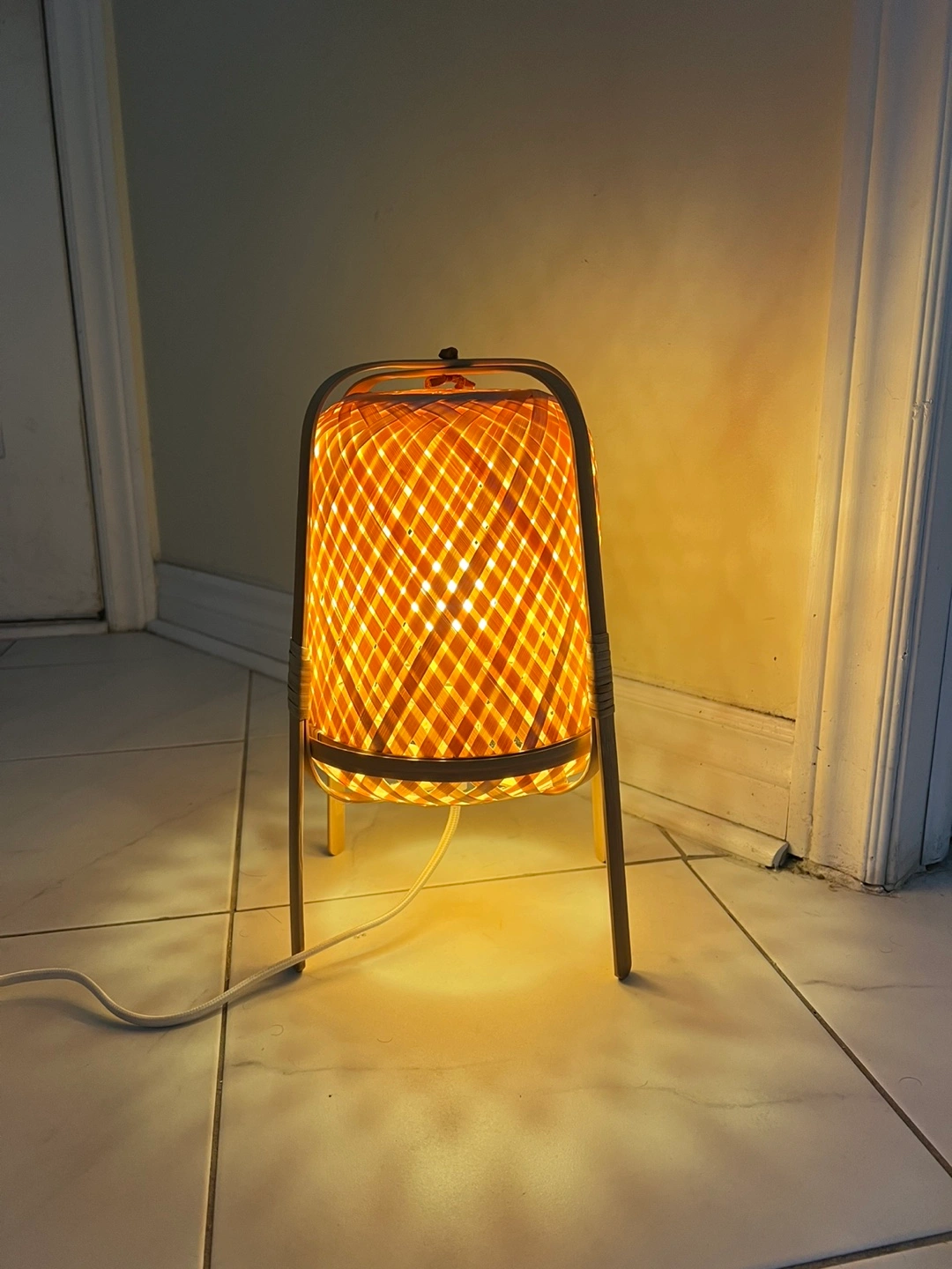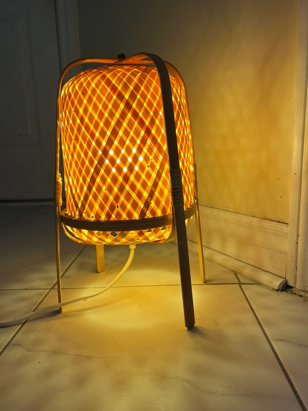 Three stylish IKEA table lamps perfect for adding ambient lighting to any room. One features a geometric patterned shade, another a sleek modern design, and the third a woven bamboo design. All are in mint condition and fully functional. $15 each