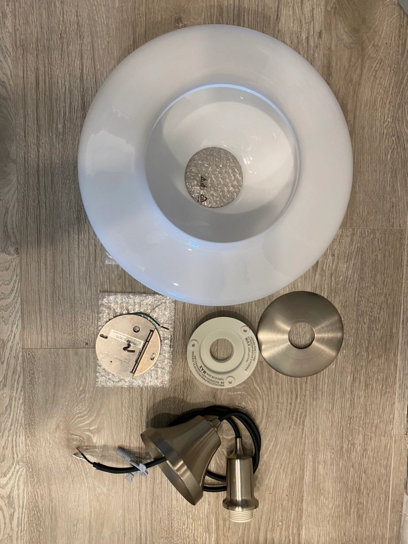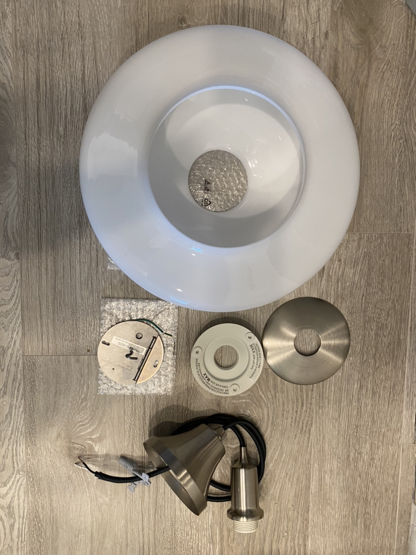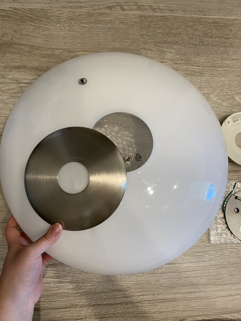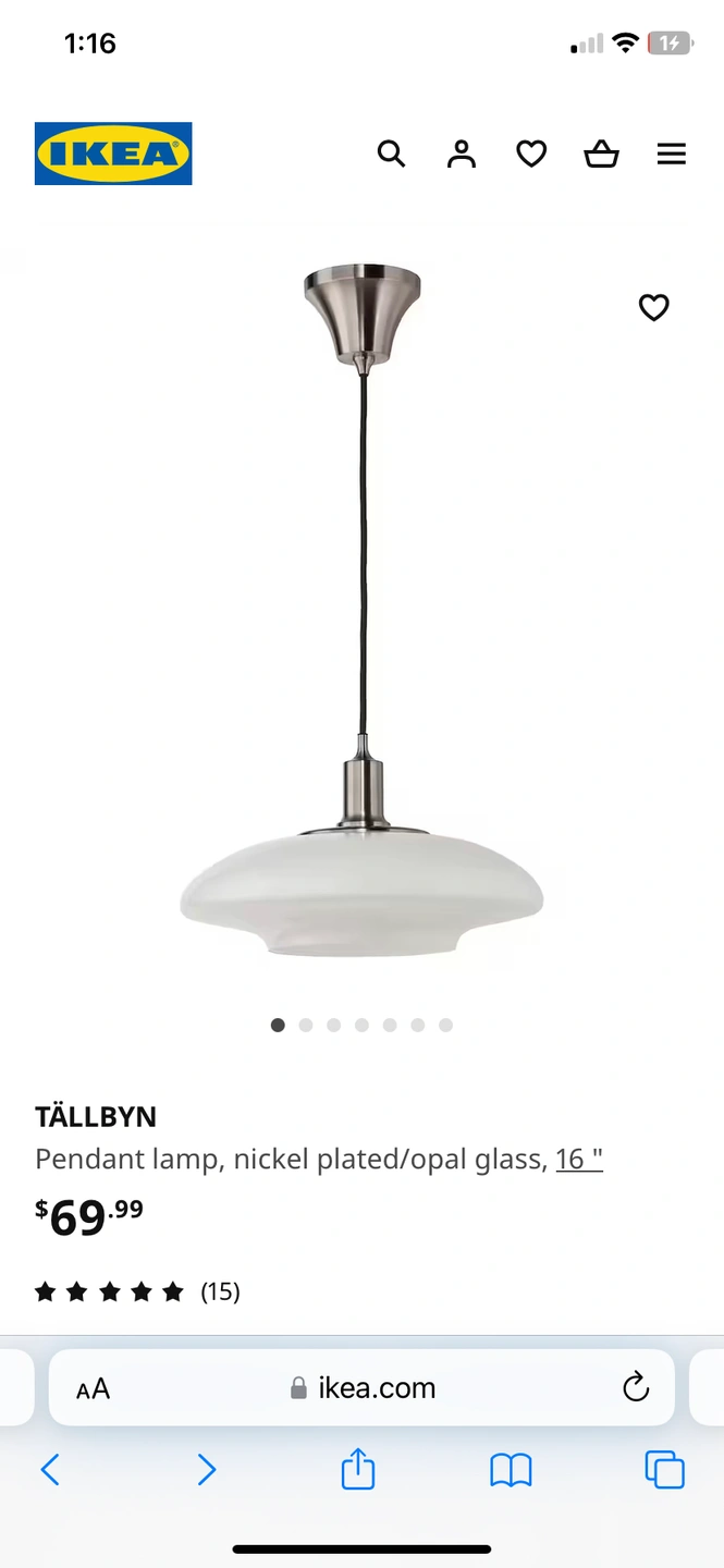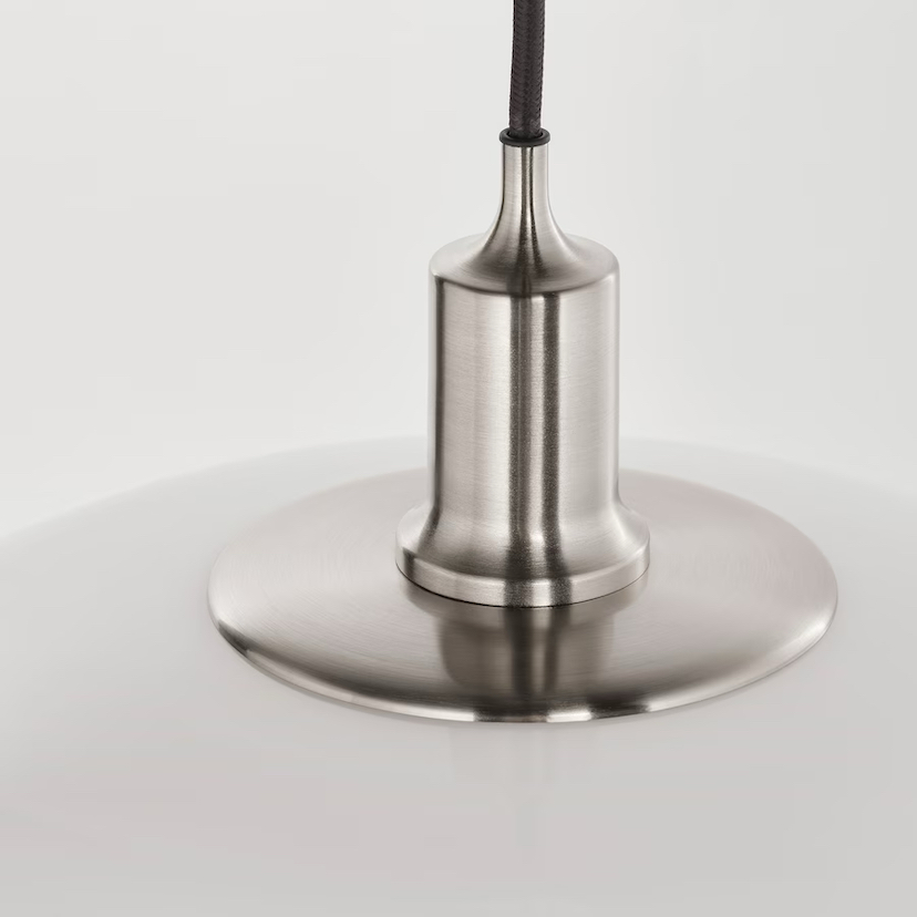 Nickel plated/opal glass pendant light Standard E26 lightbulb required max 22 watts. I can include the one I have. No longer available on IKEA Canada website, but you can still see it on the US site. Shade is 16” or 40cm wide. Length can be adjusted according to your needs. Hardwired Kept in a pet free smoke free household Price firm Pickup near Holdom station or we can arrange a meetup depending on the area