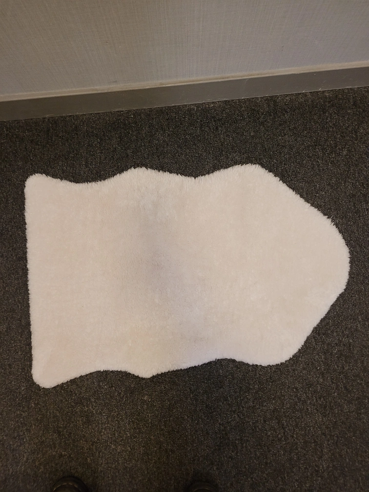 Ikea Toftlund Rug Soft white faux sheepskin rug. Unique shape. Super soft, warm and cozy whether you have it as a floor piece, drape it over your armchair or want to add comfort to your bench. It looks and feels like a sheepskin but it’s made from recycled polyester! **** Pickup Only **** **** Cash Only **** **** No E-transfers **** **** Serious Inquiries Only/ Serious Offers Only ****