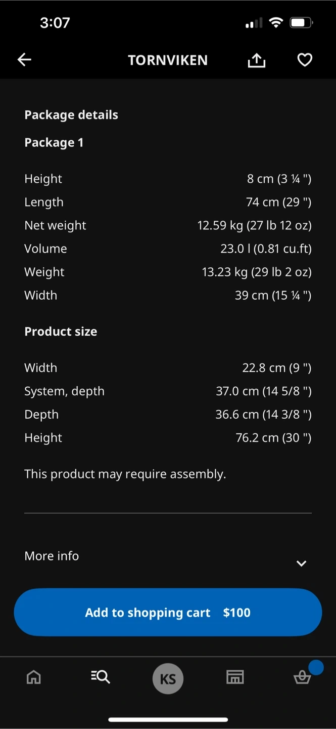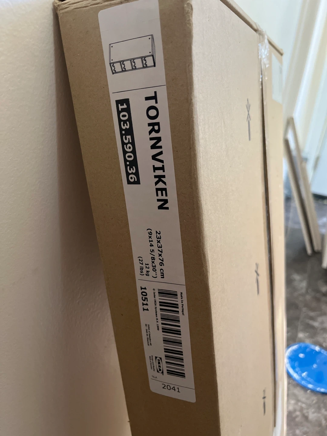 Selling a brand new IKEA TORNVIKEN wine shelf still in its original packaging! This stylish shelf is perfect for storing your favourite bottles. Dimensions are 23x37x76 cm (9x14 5/8x30 ") Got it for my kitchen by decided against. Too late to return.