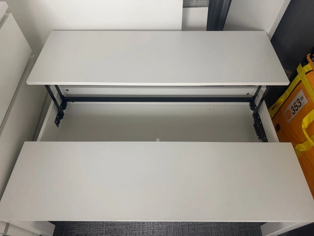 IKEA TRULSTORP lift-top coffee table in white (Article 204.002.76). Half of the tabletop lifts and pulls toward you, perfect for eating or working from the sofa; storage space underneath the top for remotes, magazines, etc. Clean and fully functional; light cosmetic wear from normal use—no wobbles or broken parts. Size: 115×70×41 cm; open height ~55 cm. Pickup: SmartStop Self Storage, 1450 Don Mills Rd, North York (storage facility, not a home). Cash or e-Transfer. Great for Candos