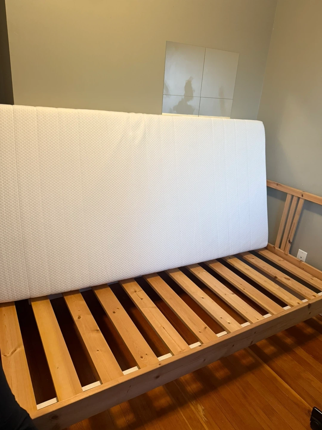 Selling an IKEA frame with a mattress. also comes with waterproof mattress cover and fitted sheet. bought it new last august when i moved out. barely used over the year, might be able to drop off for extra $20