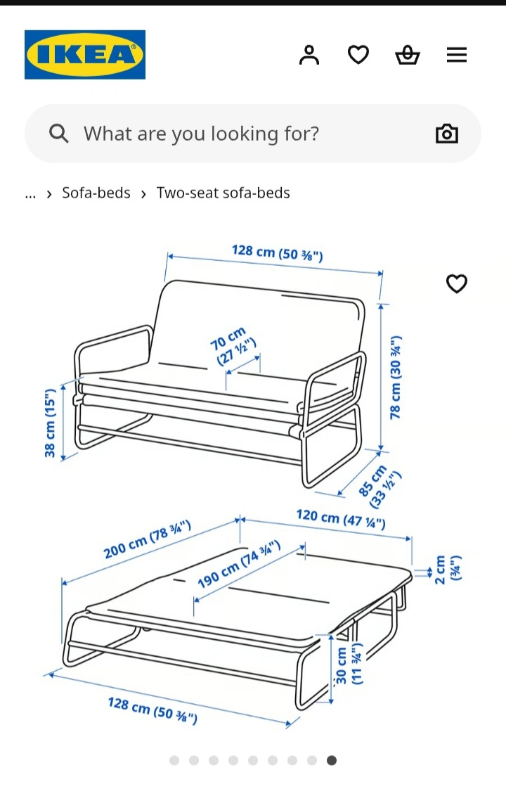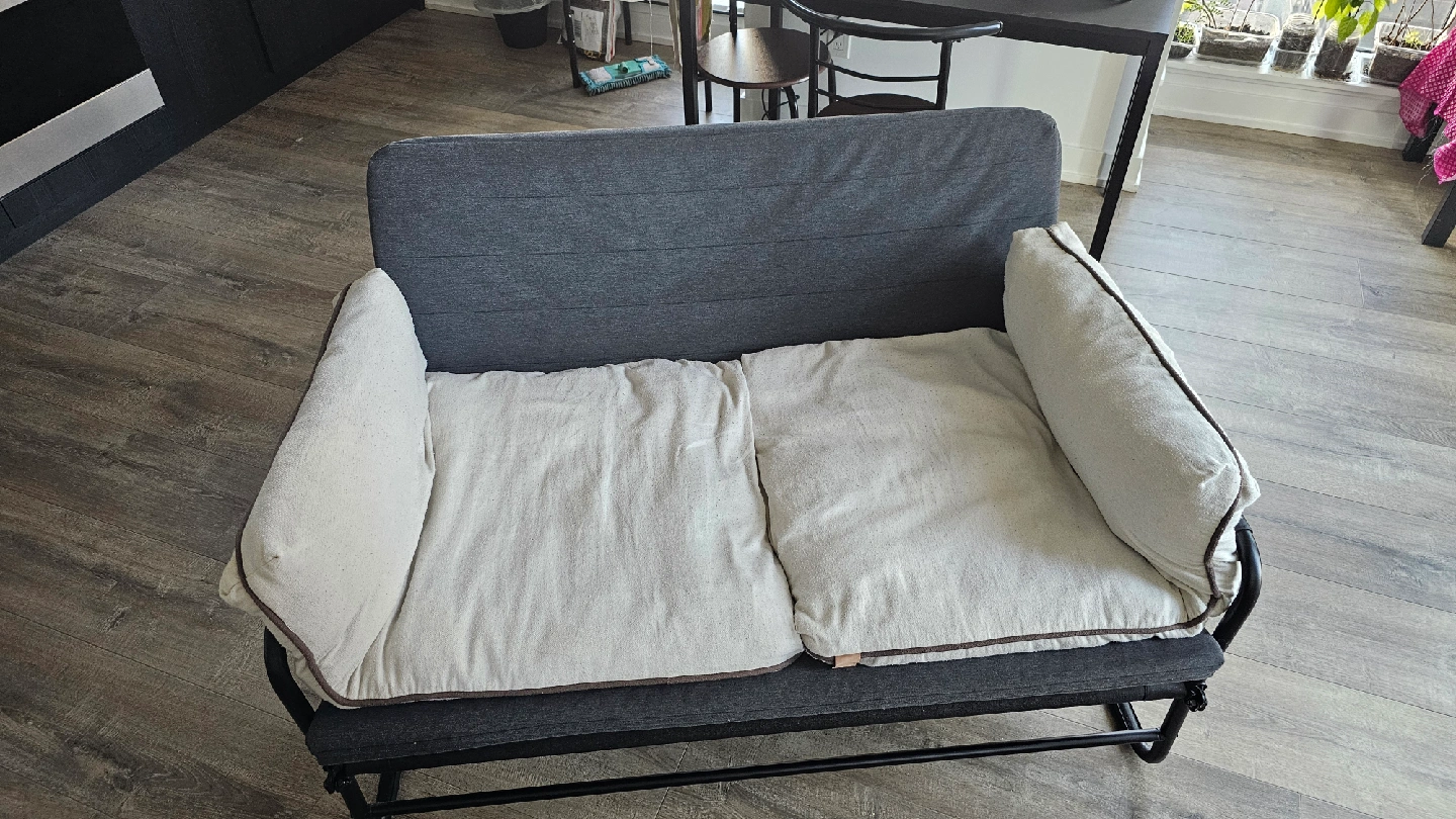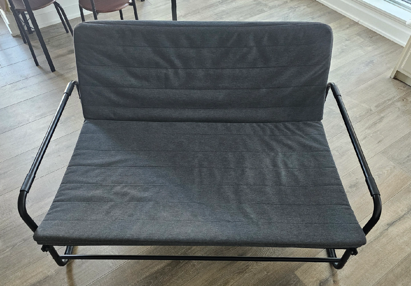 Selling an IKEA two-seat sofa bed! It's in great shape and perfect for small spaces or a guest room. The sofa easily converts into a bed, making it super practical. I use 2 large cushions for extra comfort and I'll give them for free along with the sofa. Need to be picked up, but it's small enough to be folded and fits in the back of an SUV. I'm also selling several other items, so please checkout my other listings too. Please reach out if you have any questions, thank you!