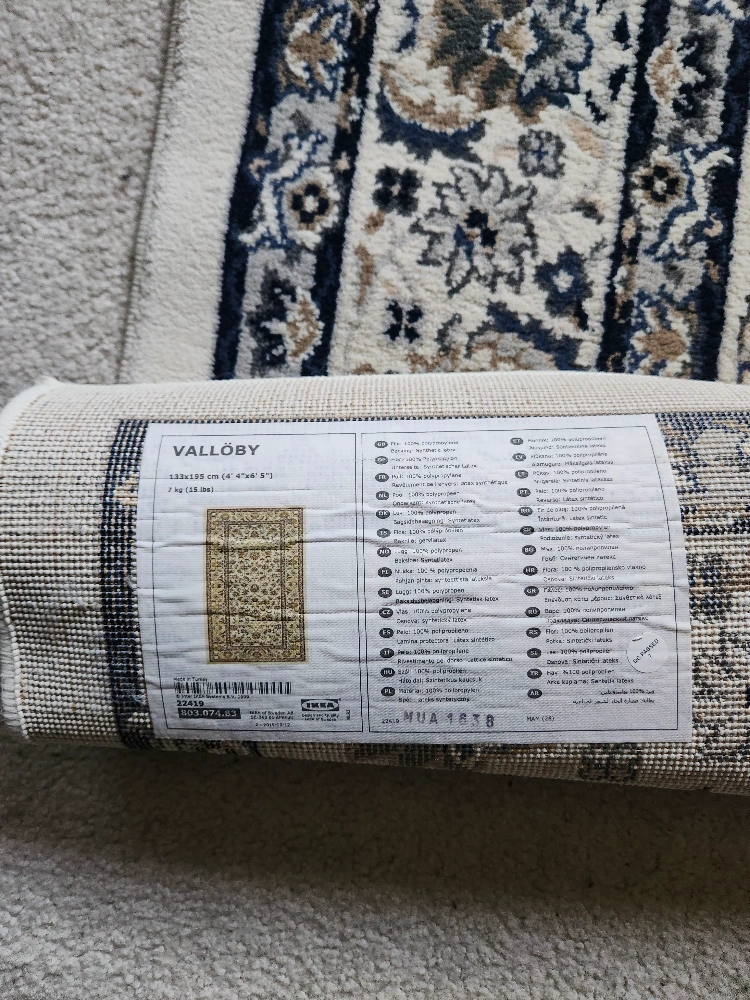 Selling a gently used IKEA VALLÖBY rug! It's in great shape and measures 133x192 cm (4'4" x 6'5"). The rug is made of 100% polypropylene and weighs about 7 kg (15 lbs). It's a lovely addition to any room