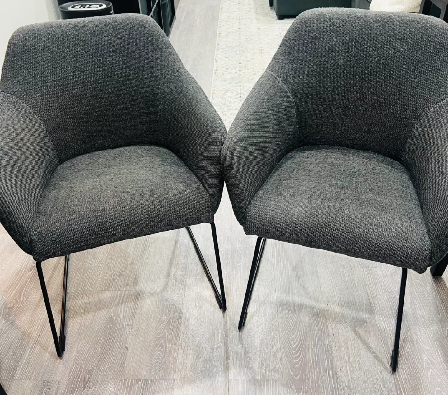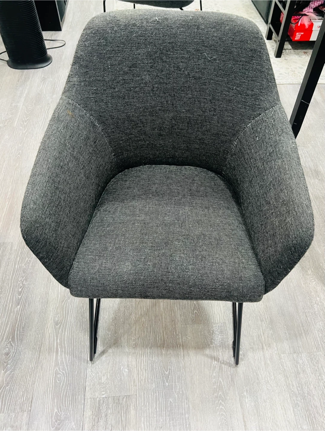 Selling a gently used IKEA Vilfred armchair. It's a stylish and comfortable addition to any living space. The chair is grey with black metal legs. Approximate dimensions: - Width: 24 inches - Depth: 23 5/8 inches - Height: 32 inches