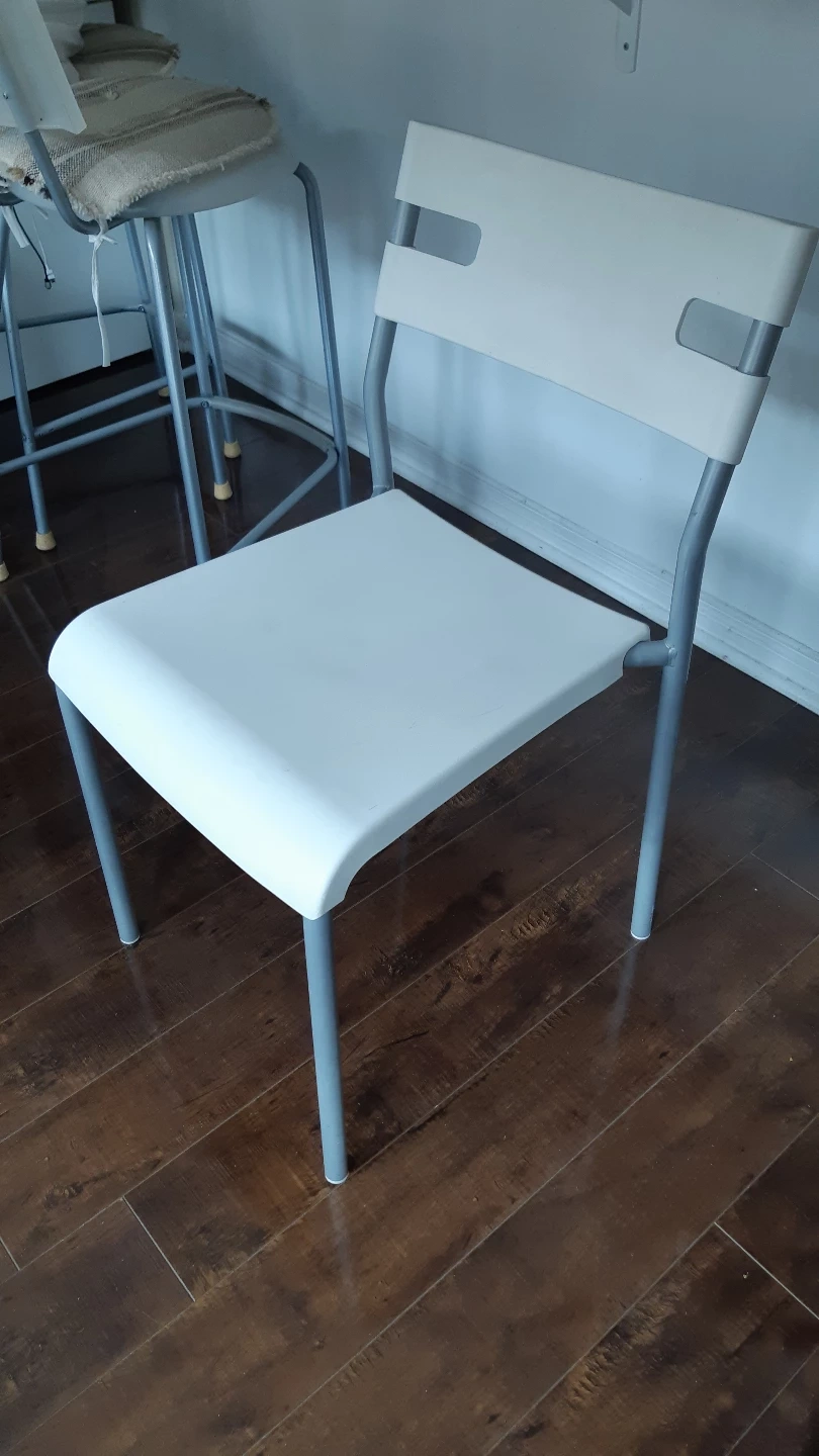 IKEA classic modern design chairs. Easy to keep clean Lightweight. Suitable for kitchen or dining room. Minimalist style. Durable plastic seat and silver metal legs. pickup location is near Jane st and Rutherford rd Vaughan 20$ each 2 available
