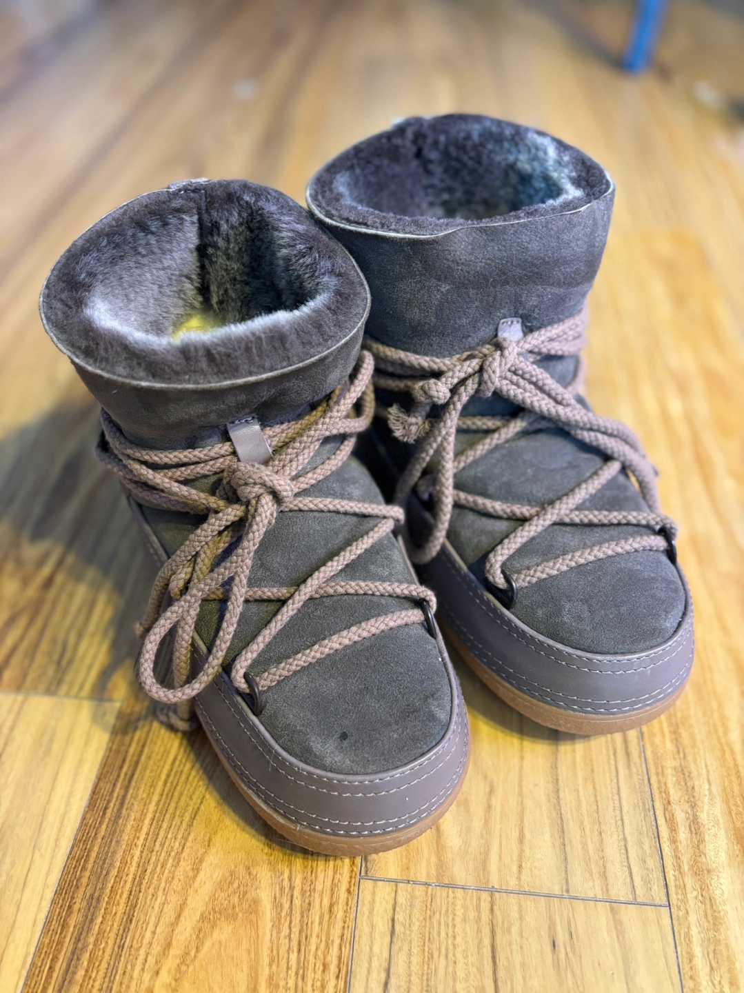 Round toe IKKII (now called Inuikii) snow boots. From lambskin leather in purple/suede with front lace-up fastening, embroidered logo to the rear and panelled design. Upper material: genuine leatherLining: shearling liningSole: flat rubber solesuper stylish. Excellent condition. Size 38 but runs small so it’s more like a 37(6.5/7).