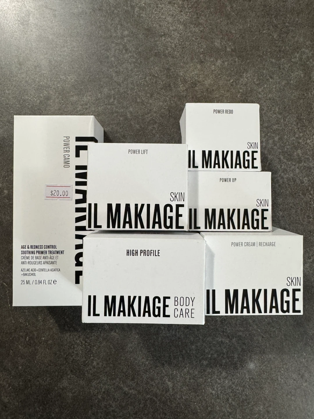 Selling a variety of IL MAKIAGE skincare products. Includes: - POWER CAMO Age & Redness Control Soothing Primer Treatment (25 mL / 0.84 FL oz e) $20 - POWER LIFT $20 - POWER REDO $25 - POWER UP $25 - HIGH PROFILE Body Care $30 - POWER CREAM | RECHARGE $20 Products new and sealed** Prices in photos and description* Prices vary on product* Pickup only downtown*