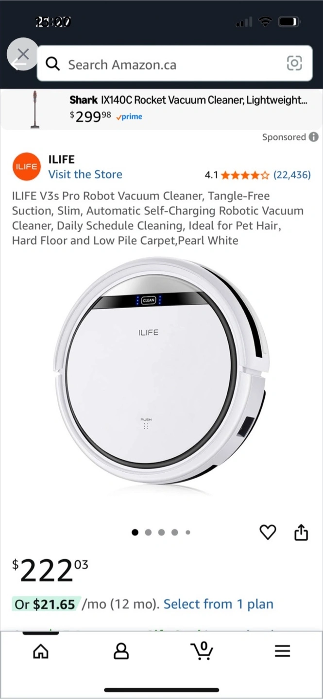Selling an iLife V3s Pro robot vacuum cleaner. It's great for pet hair, hard floors, and low pile carpets. This vacuum cleaner features tangle-free suction and automatic self-charging. Originally priced at $222.03.