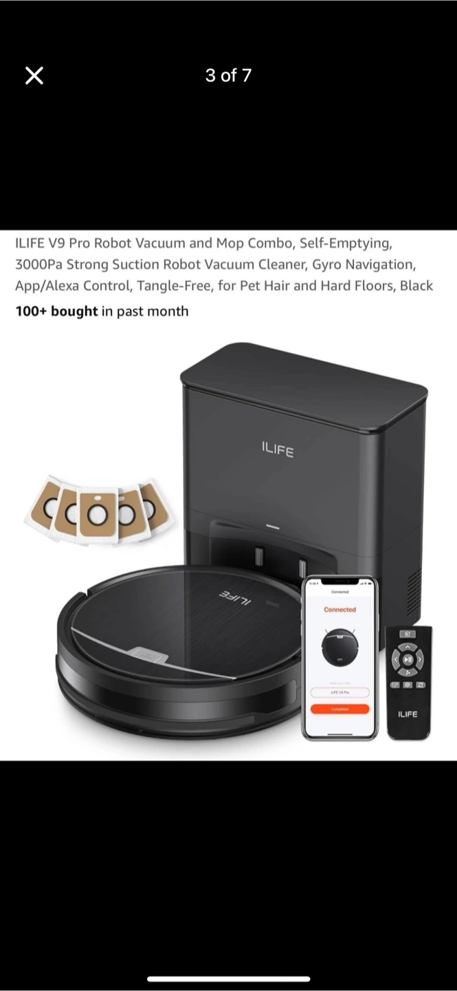 New ILIFE V9 Pro robot vacuum and mop. Self-emptying station. Strong suction. Tangle-free. Works with Alexa and Google Assistant. Pet hair friendly. Gyro navigation. App control. Includes extra dust bags. LIFE V9 Pro Robot Vacuum Cleaner – Self-Emptying, 3000Pa Suction, App/Alexa Control – New, Open Box. Keep your floors spotless with the ILIFE V9 Pro Robot Vacuum Cleaner. Featuring powerful 3000Pa suction and advanced gyro navigation, it delivers efficient cleaning on hard floors and carpets. The self-emptying base offers hands-free convenience, while app and Alexa compatibility allows for easy remote control. Designed to handle pet hair with its tangle-free technology, it’s the perfect cleaning companion for busy households. This unit is new, open box, and does not include a mop and remote. All other original accessories are included. Shop with confidence at MS Electronix – offering quality products at great prices! Feel free to message me with any questions.