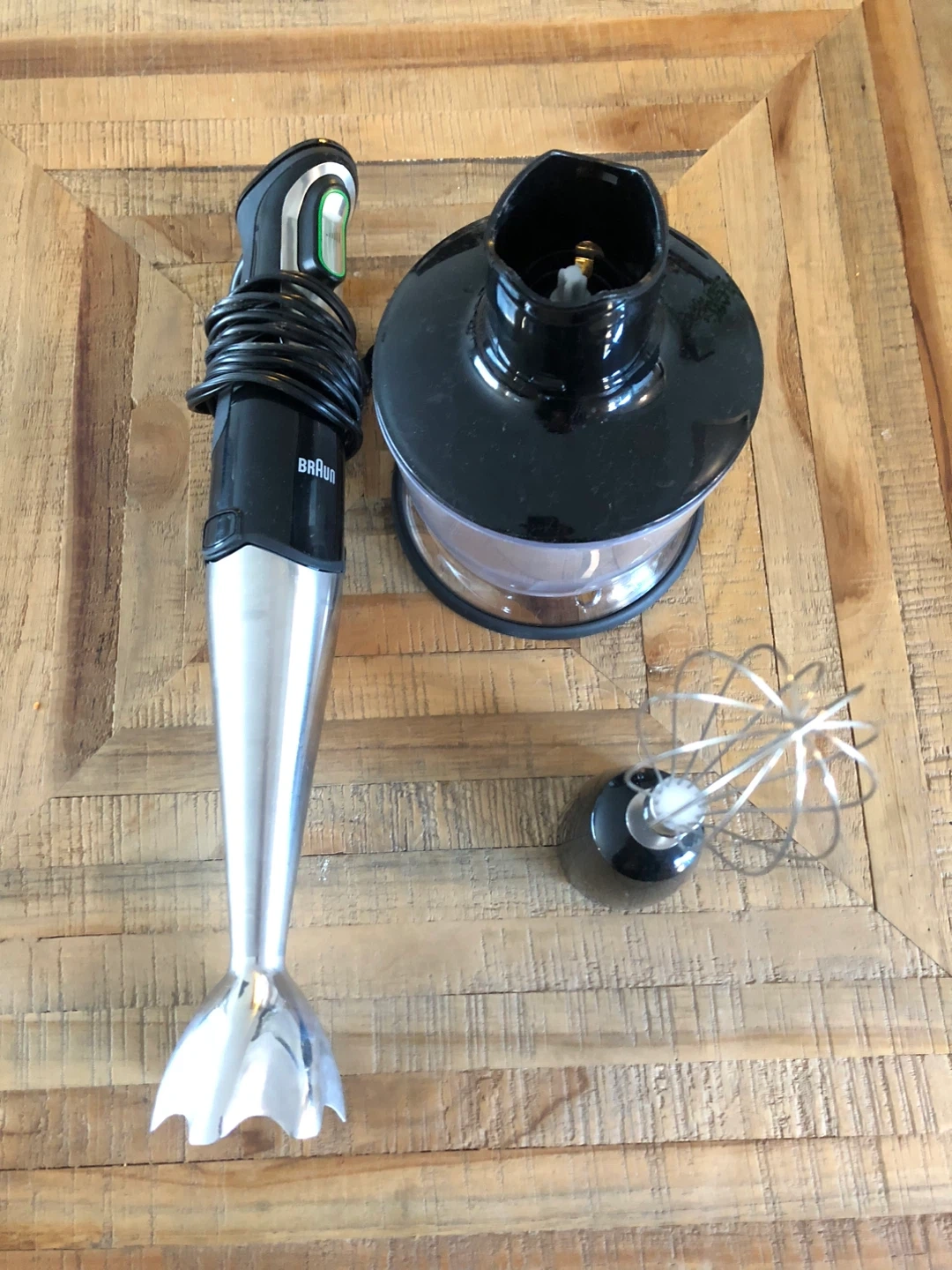 Selling a Braun multi speed hand blender / immersion blender / food processor. It comes with all the original pieces minus the beaker. We get tons of use out of this gadget and I love how compact it is for doing so many different things. Still works great but was just gifted a brand new one. Occasionally the clasp between handle and blender gets a bit sticky, but just needs to be wiggled a bit.