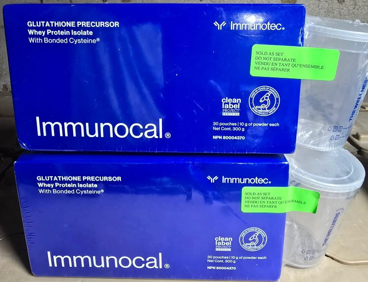 Selling two sealed boxes of Immunocal Glutathione Precursor Whey Protein Isolate. Each box contains 30 pouches of 10g powder, with a net content of 300g. They are being sold as a set. $170 both