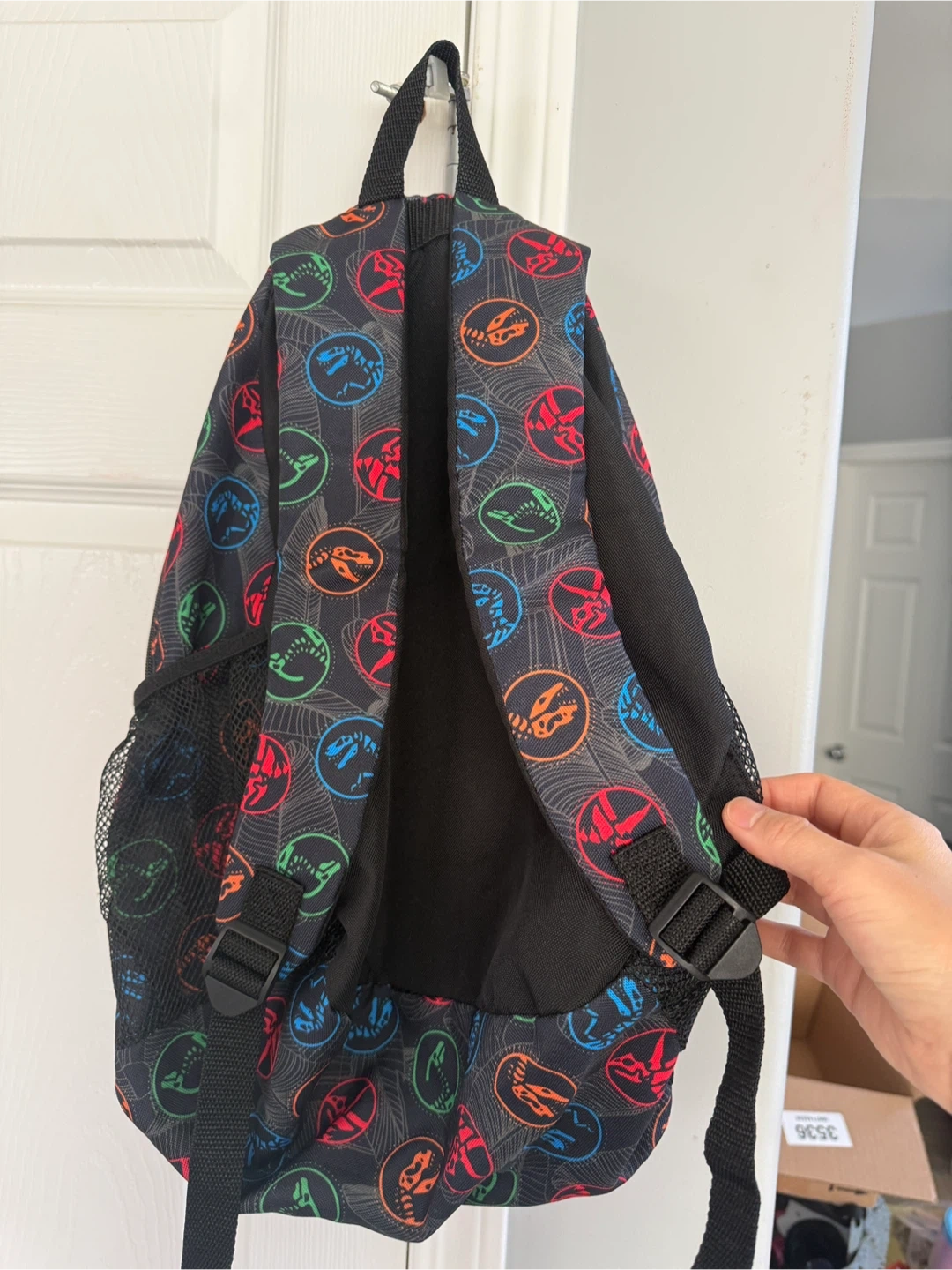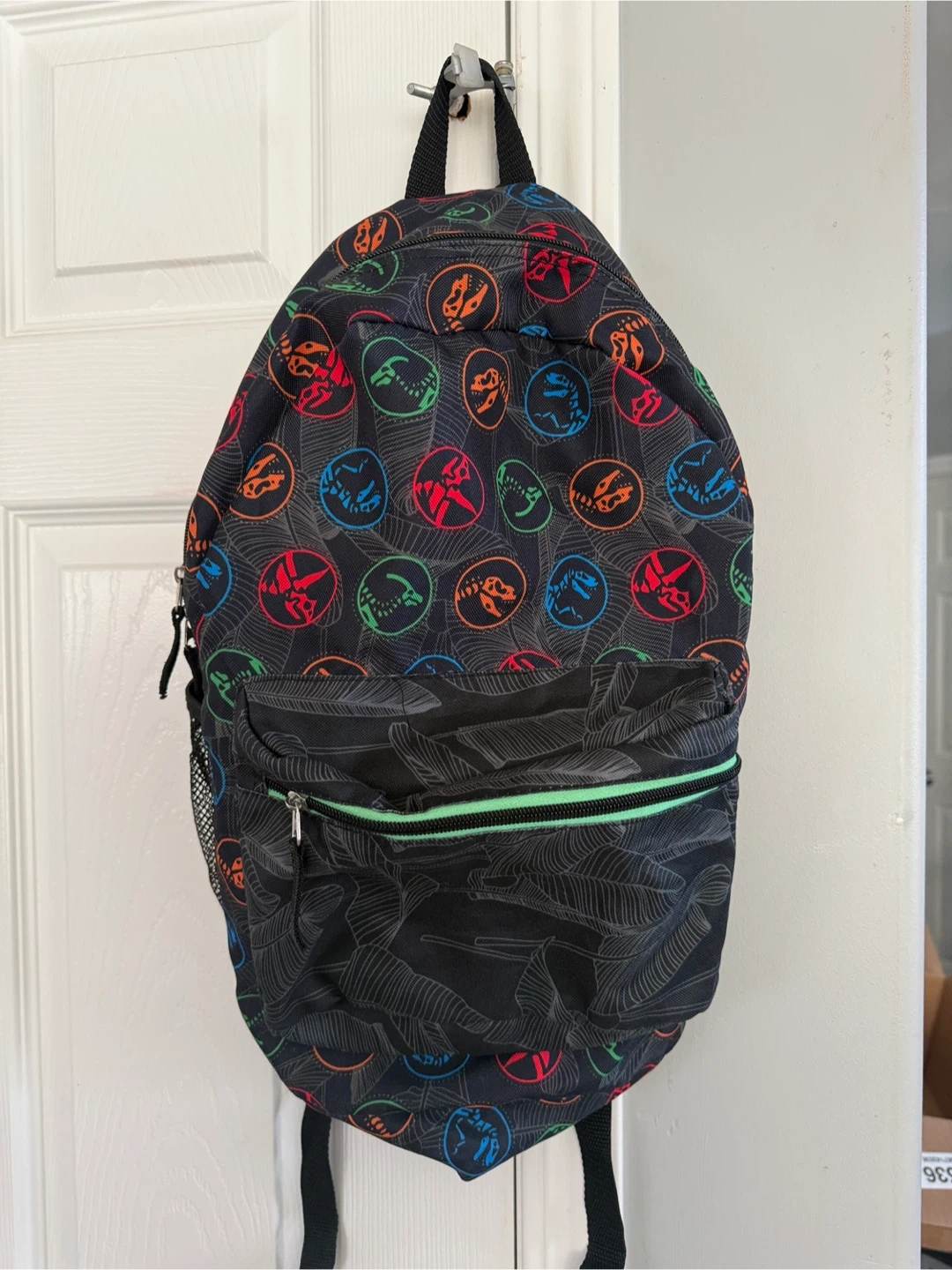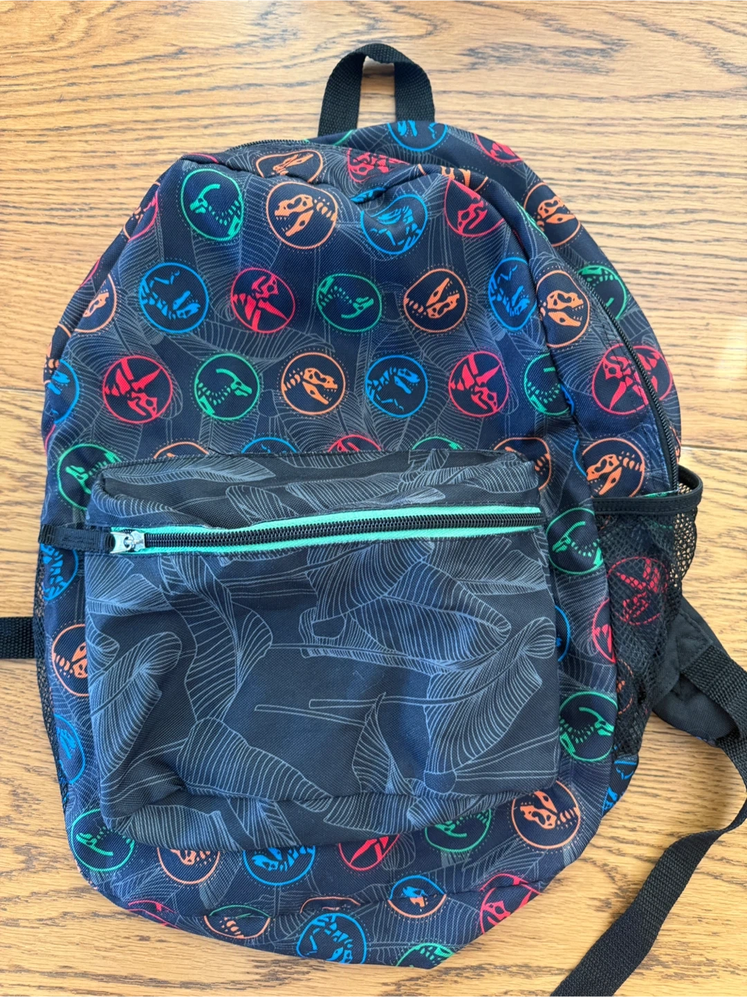 This Jurassic World backpack from IMPACT is perfect for your little dinosaur enthusiast! It features a fun, colourful design with dinosaur fossils, and is in great condition. The backpack has adjustable straps and a front pocket for extra storage too