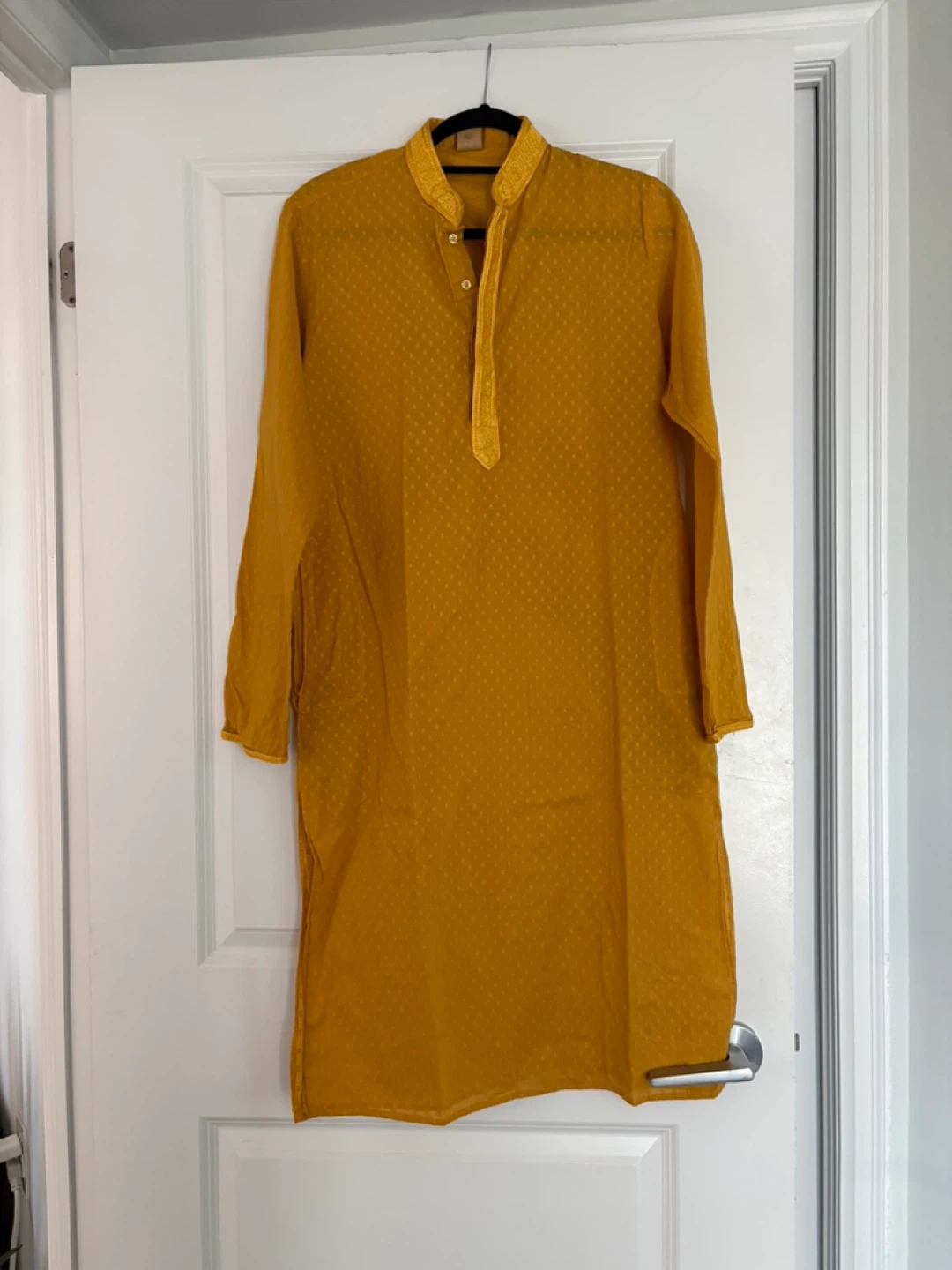 Selling a mustard yellow kurta. It's in great condition and ready for a new home! It's a beautiful colour and would look great the ongoing festive season Manyavaar Size 40 Pick up in Liberty Village