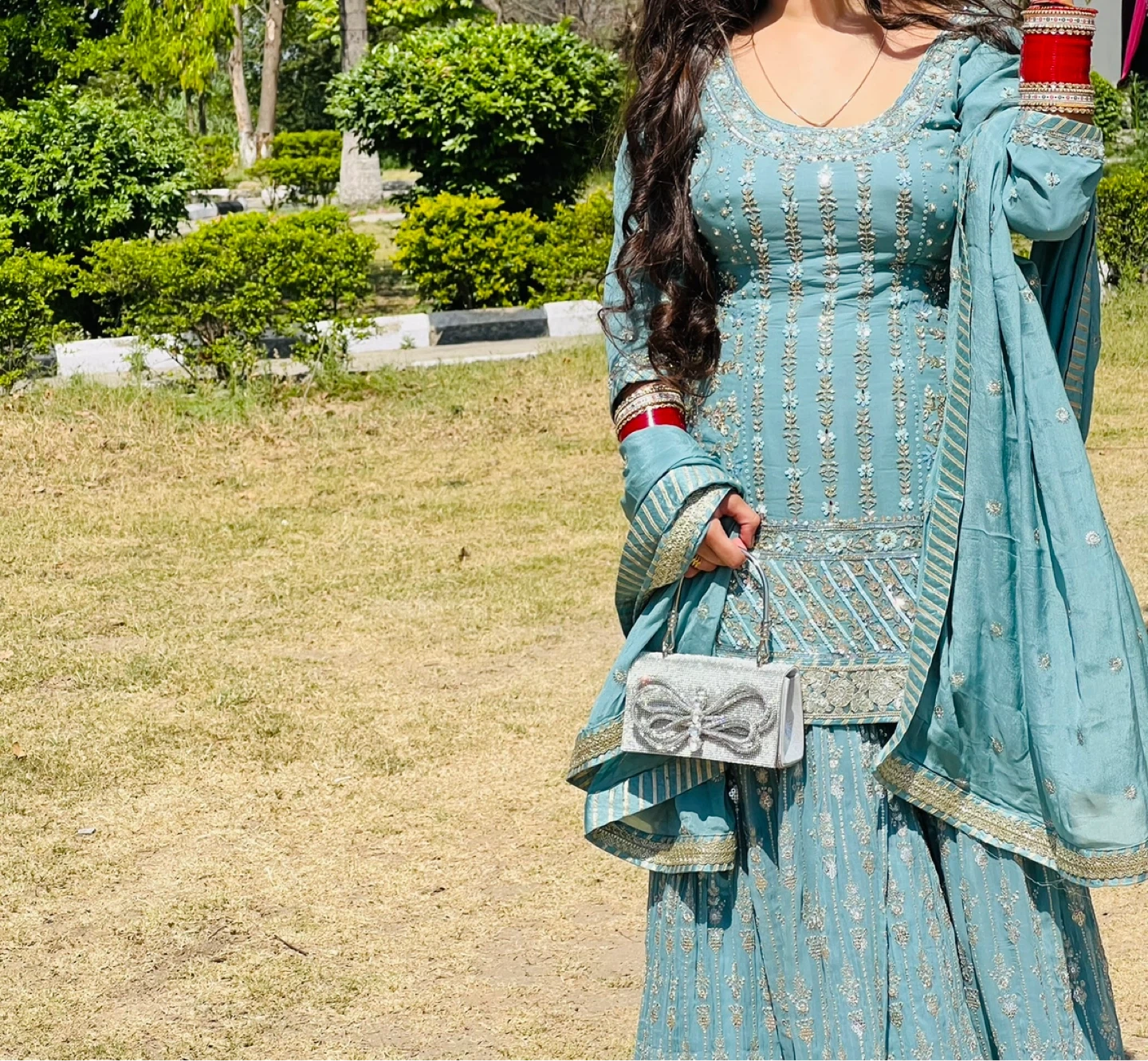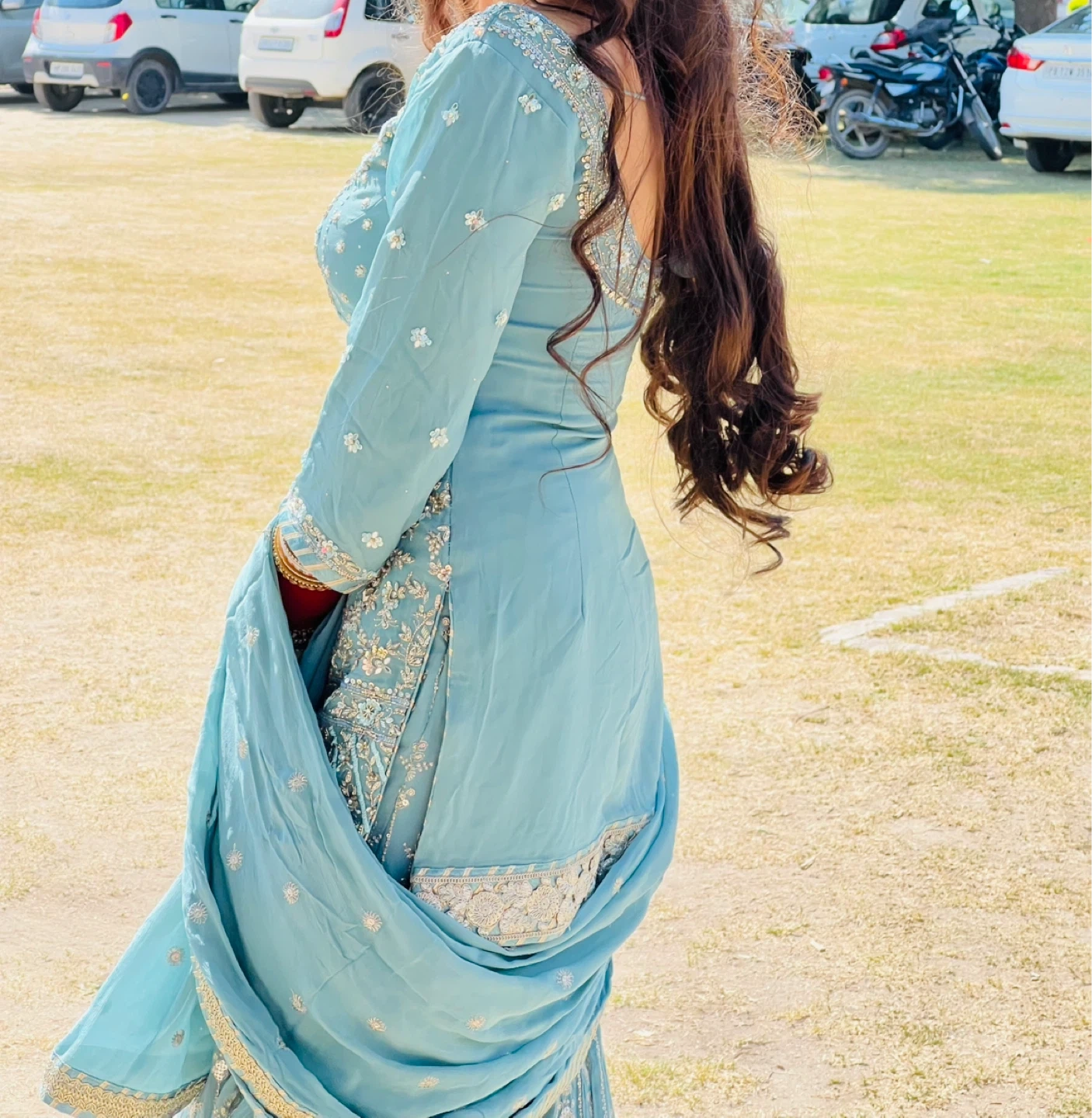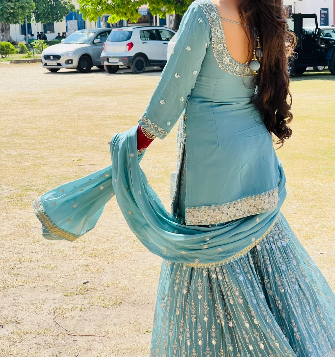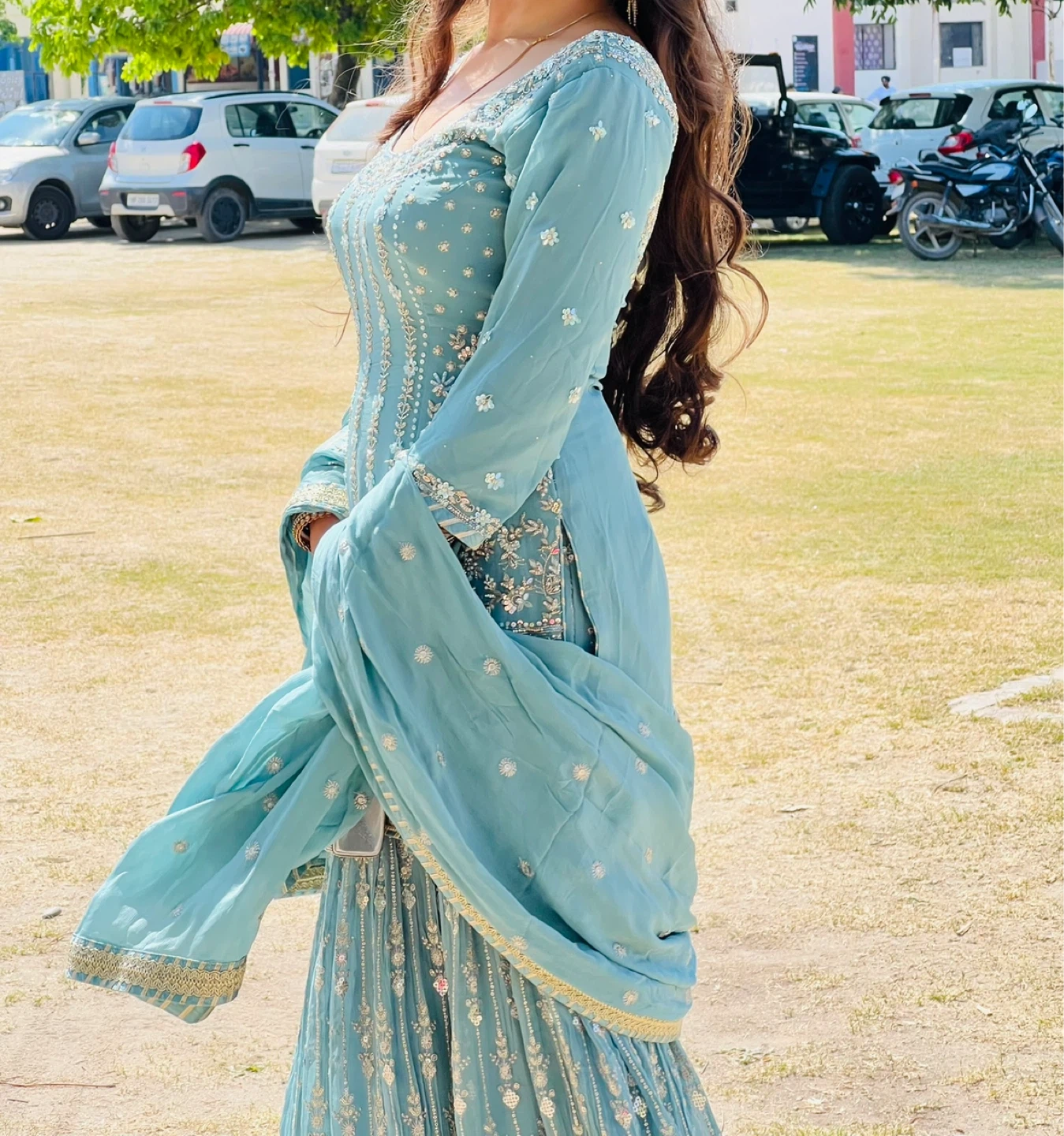 New indianwear sharara heavy suit with heavy embroidery sky blue colour
