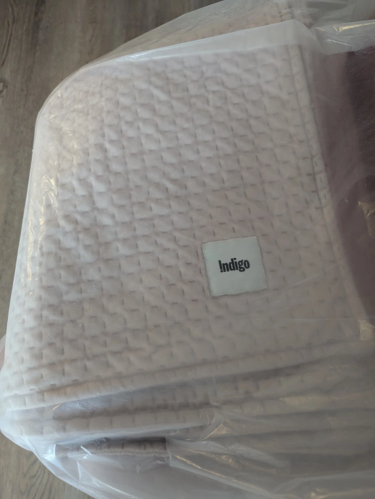 Weighted blanket. Features a waffle texture design. Perfect for snuggling up with on a cold day.