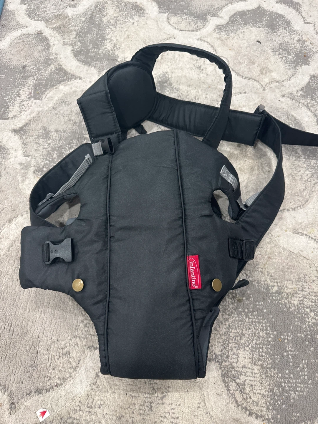 I'm selling an Infantino baby carrier in black. It looks like it's in great shape and ready for a new home! Perfect for keeping your little one close while you're on the go