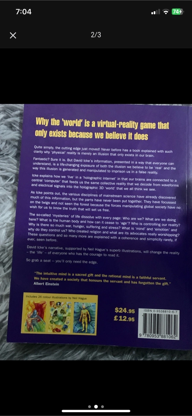 Selling the book 'Infinite Love is the Only Truth' by David Icke. It explores the nature of reality and illusion. Originally bought for $24.95. Grab a seat - you'll only need the edge