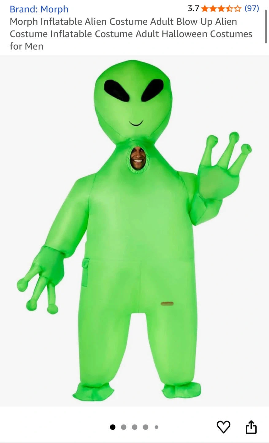 Get ready to have some fun with this Morph Inflatable Alien Costume! It's an adult size, perfect for Halloween or any costume party. This blow-up costume is sure to turn heads and get some laughs Only used once