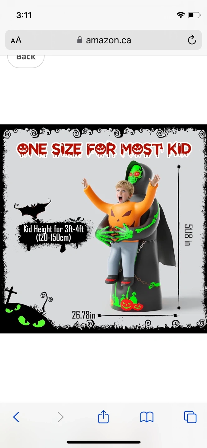 Get ready for Halloween with this fun inflatable Grim Reaper costume! It's designed for kids who are 3-4 feet tall (120-150cm). The costume is easy to use and can be powered by batteries or a portable power bank (batteries and power bank not included). It's suitable for both indoor and outdoor use, so your little one can trick-or-treat in style!