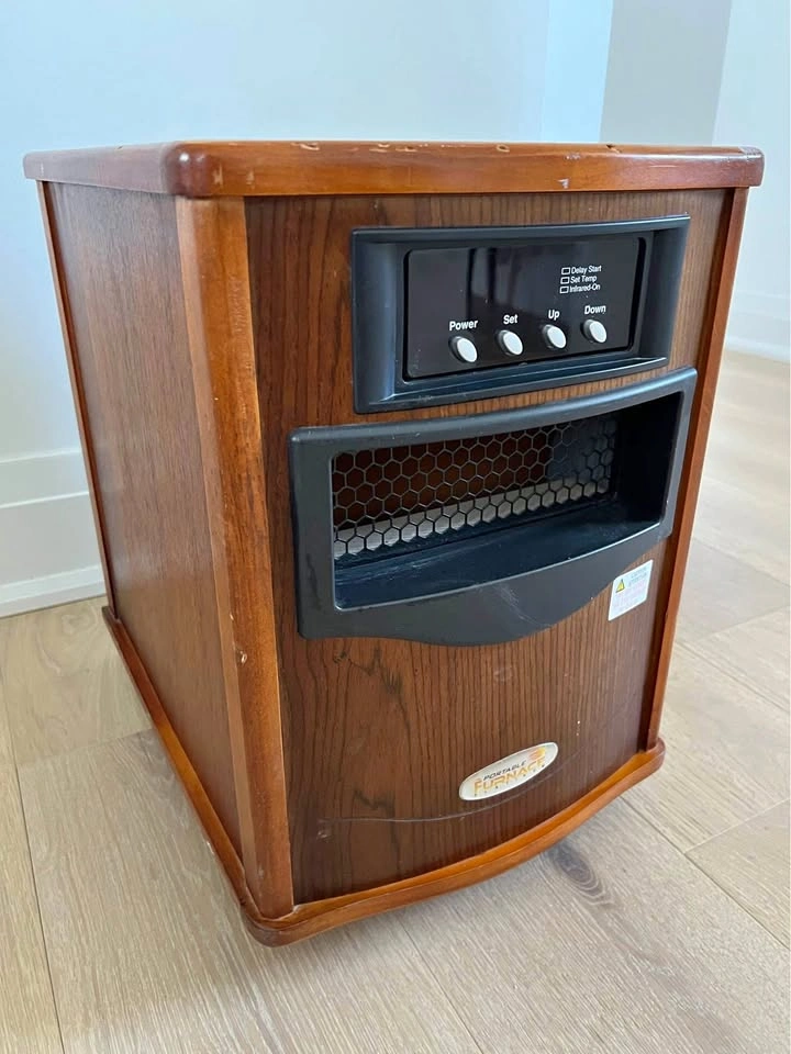 Efficient, powerful, and portable heating solution for your home! Heats up to 1000 sq.ft. with two settings: Low (750W) & High (1500W) Features 4 quartz infrared heat elements with stainless steel diffusers (up to 20,000 hours lifespan) Designed for low energy consumption to help reduce your heating bill Compact and easy to move where you need it most Note: There are some scratches on the top, so the price reflects this cosmetic wear. Works perfectly and still has plenty of life left!