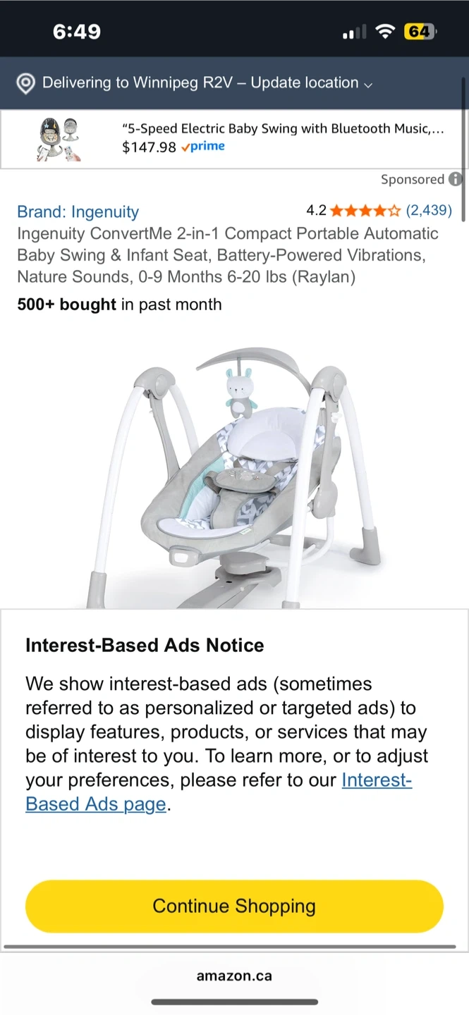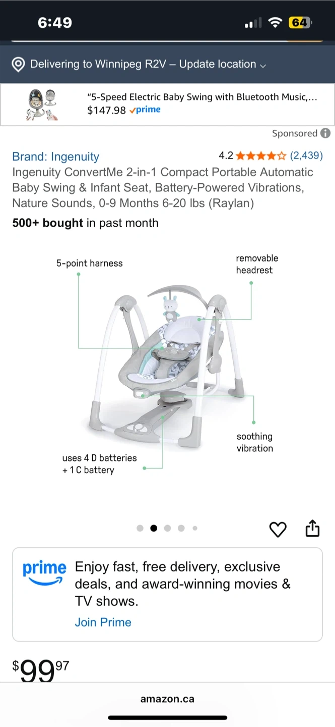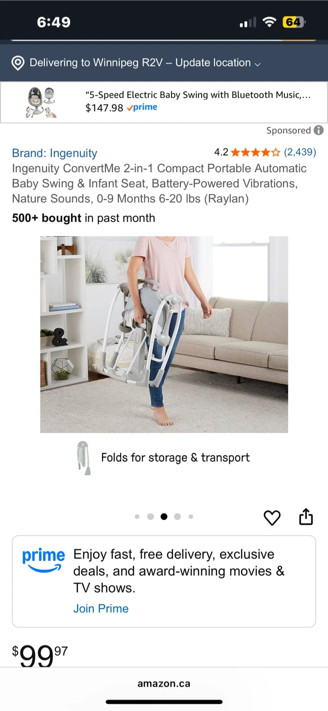 Selling an Ingenuity ConvertMe 2-in-1 Compact Portable Automatic Baby Swing that plugs in It has battery-powered vibrations and nature sounds. Suitable for babies 0-9 months (6-20 lbs). Folds for easy storage and transport too!