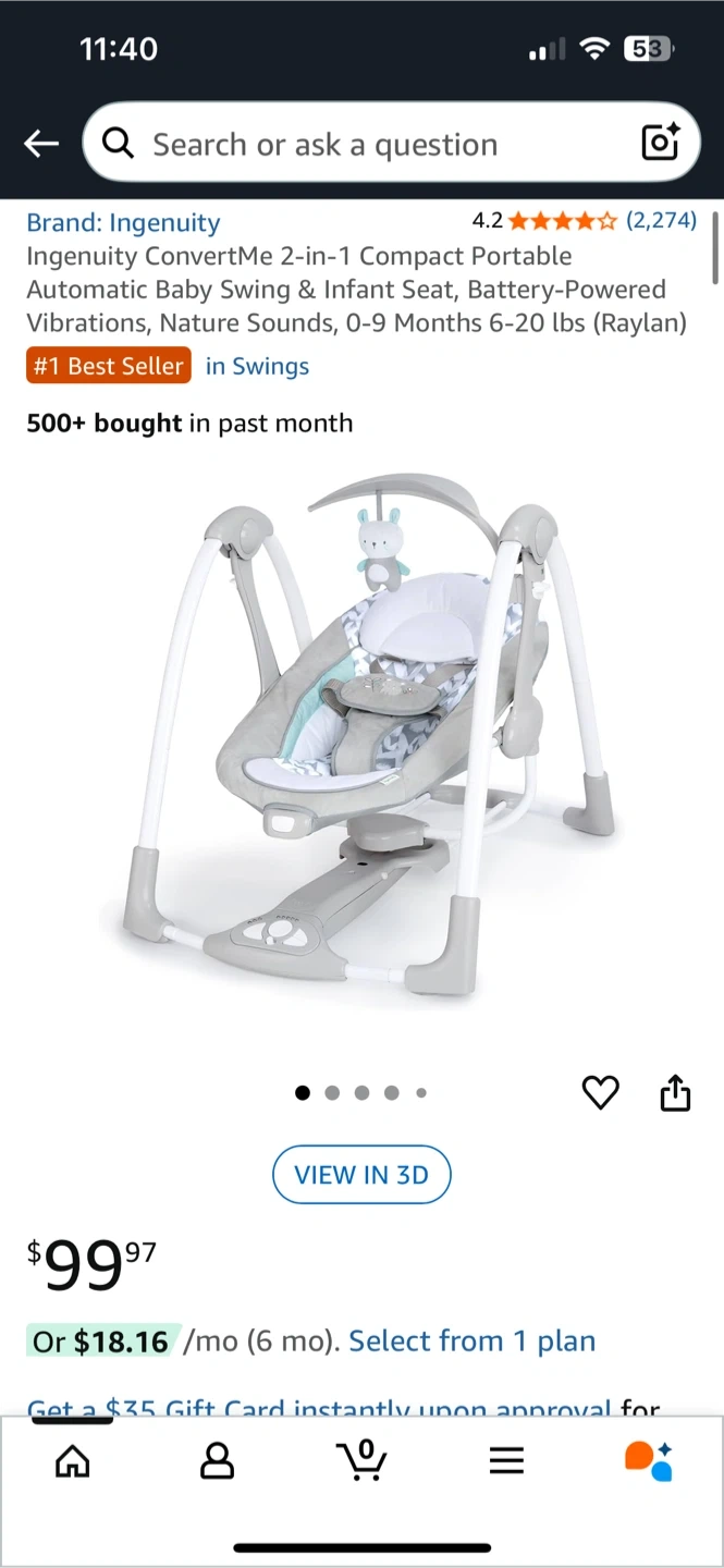 Looking to sell an Ingenuity ConvertMe 2-in-1 Compact Portable Swing & Infant Seat! It's battery-powered and has vibrations and nature sounds to soothe your little one. Recommended for ages 0-9 months and 6-20 lbs. Originally bought for $99.97
