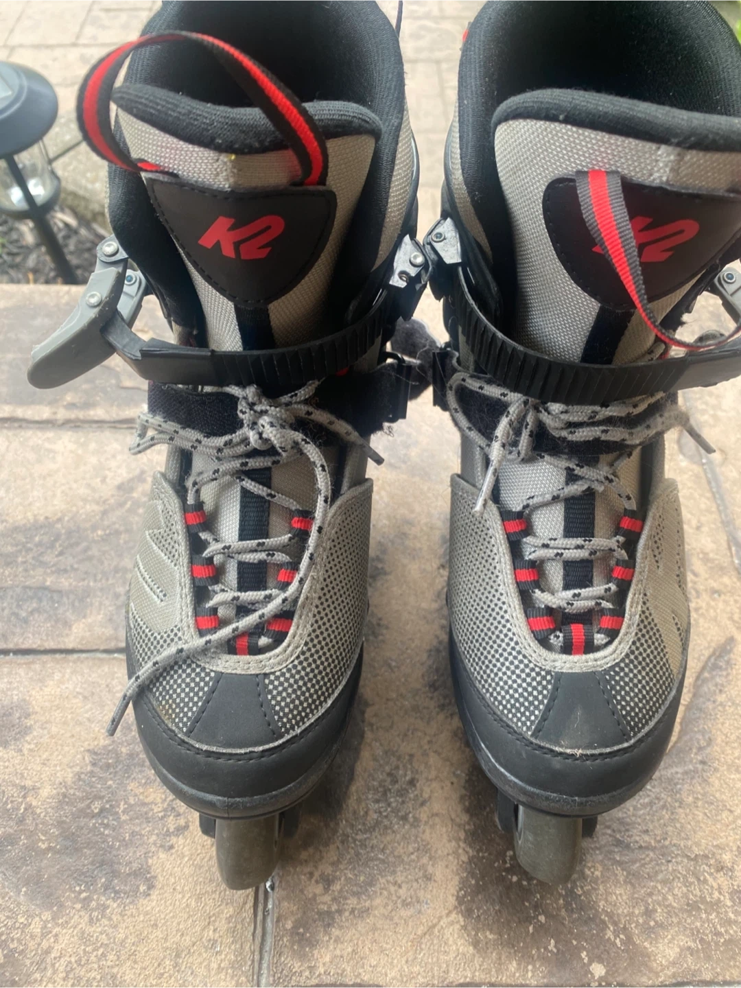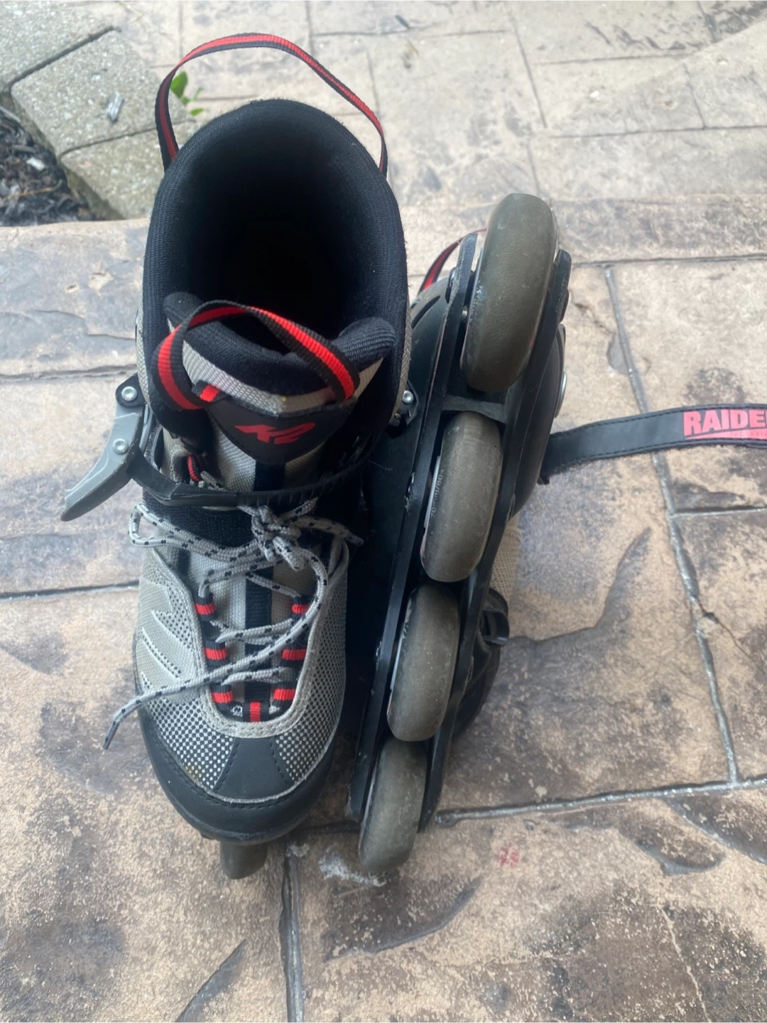 Selling a pair of inline skates. They're in good condition and ready for some fun on the pavement! These skates are perfect for beginners or anyone looking for a comfortable and reliable pair of inline skates. They feature a sturdy frame and smooth-rolling wheels. Size 5