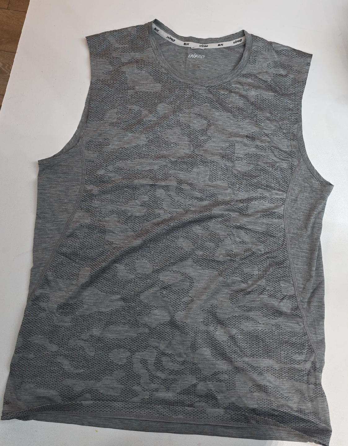 Here's a grey sleeveless training shirt from INPRO! It's perfect for your workouts or just lounging around. The material is lightweight and breathable, so you'll stay cool and comfortable. It's in great condition and ready for a new home